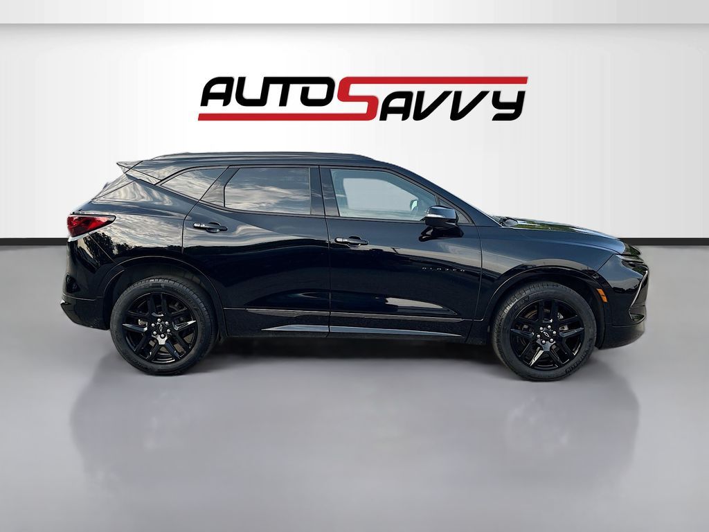 Explore the dynamic 2024 Chevrolet Blazer AWD RS at AutoSavvy Windsor, a standout SUV with only 25,493 miles. This sleek black beauty is powered by a commanding 3.6L V-6 engine, delivering an impressive 308 horsepower with cylinder deactivation for enhanced efficiency. The Blazer's sporty design is complemented by 20-inch gloss black aluminum wheels and a striking Jet Black interior with red accents. Enjoy a premium driving experience with features like a power panoramic sunroof, ventilated front seats, and a Bose premium audio system. Stay connected with Apple CarPlay and Android Auto, and navigate effortlessly with the integrated Chevrolet Infotainment 3 Premium System. The current status of the title is branded, reflecting AutoSavvy Windsor's dedication to transparency and quality. This Savvy Certified vehicle has undergone a rigorous inspection to meet high safety and performance standards, ensuring exceptional reliability and value. With the assurance of our exclusive 4-month/4,500 Mile Warranty, you can drive with peace of mind, knowing you're covered for unexpected repairs. Visit AutoSavvy Windsor today to experience the perfect blend of style, technology, and dependability with the 2024 Chevrolet Blazer AWD RS.