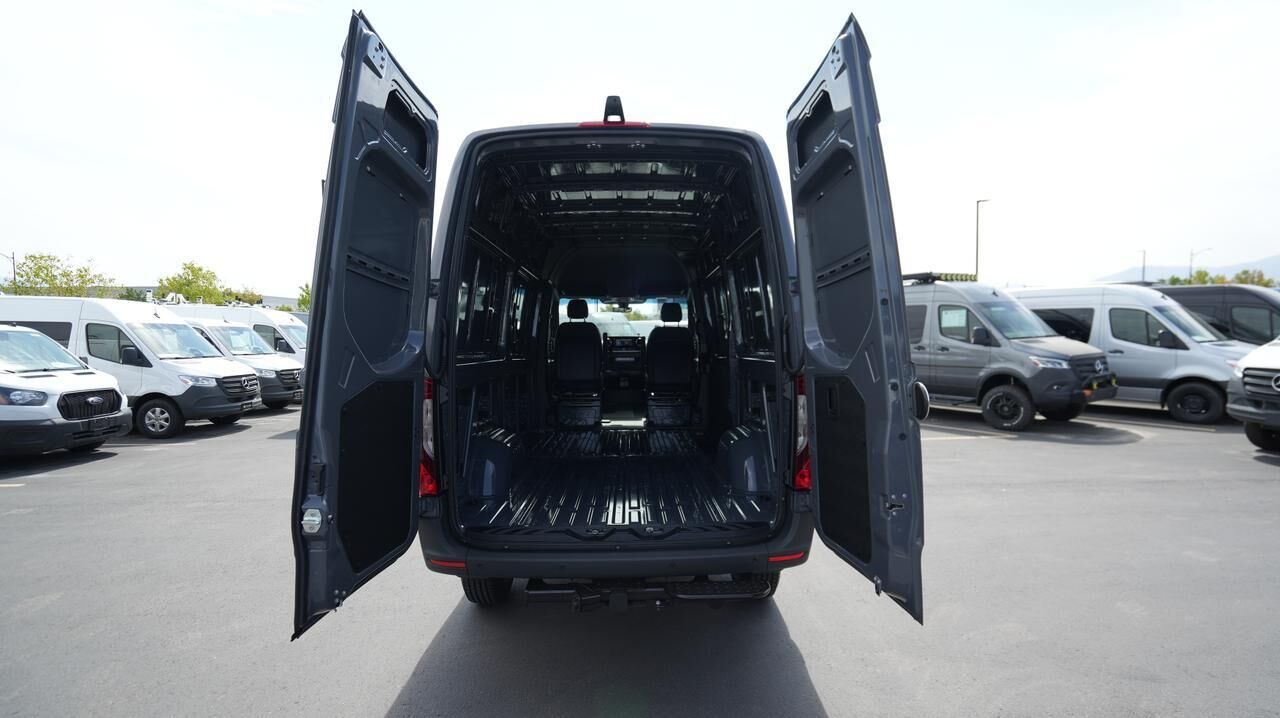 Acoustic Package,All Wheel Drive Package,Comfort Package,Comfort Plus Package w/Heated Steering Wheel,Drive Assist Package,Driver Convenience Package,Exterior Lighting Package,MBUX Package,Parking Package,Smartphone Integration Package,Swivel Seat Package,Winter Package Plus,High Roof,5 Speakers,AM/FM radio,Radio: MBUX Multimedia System w/10.25 Touchscreen,Radio: Standard,Air Conditioning,Driver Seat Base 12V Power Outlet,Instrument Panel Front-to-Rear Outlet,Power steering,Power windows,Remote keyless entry,Steering wheel mounted audio controls,Speed-sensing steering,Traction control,2 Additional Master Keys,4-Wheel Disc Brakes,ABS brakes,Dual front impact airbags,Dual front side impact airbags,Emergency communication system,Front anti-roll bar,Front wheel independent suspension,Low tire pressure warning,Overhead airbag,Rear anti-roll bar,Active Lane Keeping Assist,Blind Spot Assist,Brake assist,Electronic Stability Control,Exterior Parking Camera Rear,Fully automatic headlights,Co-Driver Thorax-Pelvis Sidebag,Driver's Seat Occupancy Sensor,Front Passenger Airbag,Active Distance Assist DISTRONIC®,Speed control,Bodyside moldings,Electrically Folding Exterior Mirrors,Fog Lamp w/Cornering Light Function,Heated door mirrors,High Beam Assist,LED High Performance Headlamps,Partial LED Tail Lights,Power door mirrors,Sideguard Assist,ATTENTION ASSIST®,Comfort Overhead Control Panel,Digital Rearview Mirror,Driver door bin,Front Compartment Heat Insulation,Heated Steering Wheel,Hinged Lid for Left & Right Storage Compartments,Illuminated entry,Leather Steering Wheel,Low Driver's Seat Frame,No Factory Installed Flooring,Outside temperature display,Overhead console,Passenger seat mounted armrest,Pre-Installation for Navigation,Tachometer,Tilt steering wheel,Armrest for Driver's Seat,Armrest for Front Passenger's Seat,Co-Driver Comfort Head Restraint,Co-Driver's Seat Lumbar Support,Driver Comfort Head Restraint,Driver's Seat Lumbar Support,Driver's Seat Mounted Armrest,Driver's Seat Swivel Base,Electrically Adjustable Co-Driver's Seat,Electrically Adjustable Driver's Seat,Front Bucket Seats,Front Passenger's Seat Swivel Base,Heated Driver's Seat,Heated Front Passenger Seat,Heated front seats,Low Passenger's Seat Frame,Maturin Fabric Upholstery,Standard Driver Seat,Standard Front Passenger Seat,Hinged Lid for Storage Compartment,Passenger door bin,Roof Rack Mounting Rails,Trailer Hitch,Trailer Hitch Rear Half-Sided Step,16 x 6.5J Steel Wheels,Wet Wiper System,Rain sensing wipers,Variably intermittent wipers,3.923 Axle Ratio