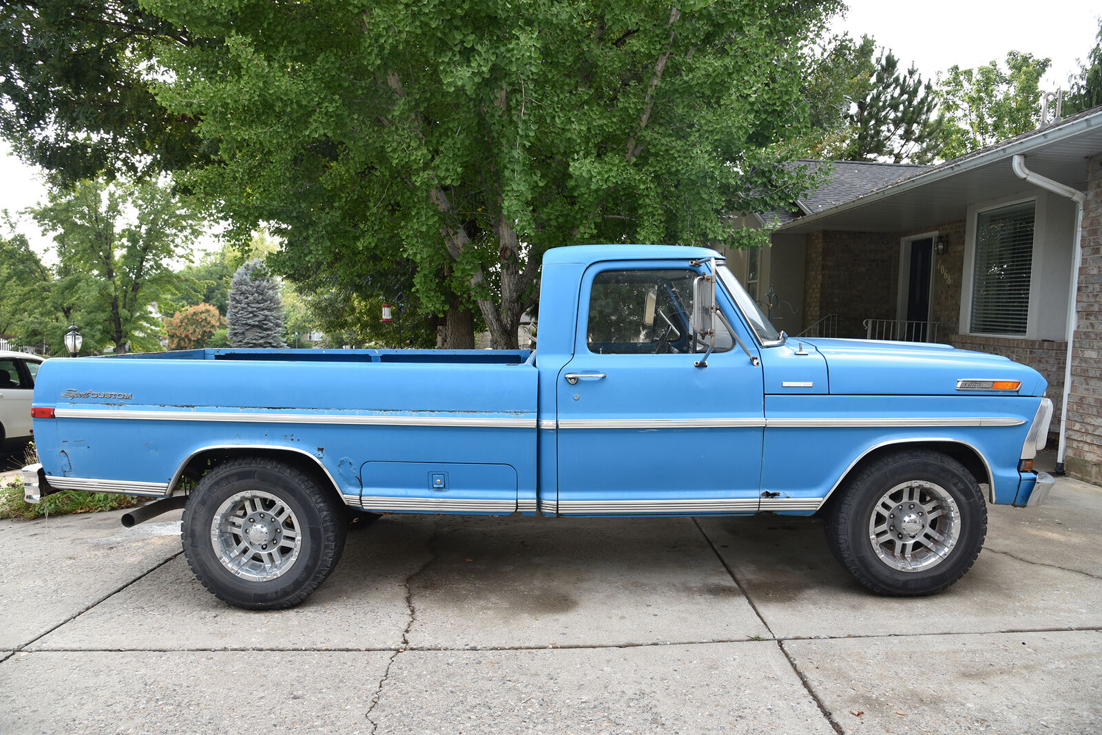 Selling our Blue 1971 two-wheel drive F250 Camper Special pickup. It has been a fun truck but time to get one we can travel long distances. Runs and has been a great garden/ farm truck. It has been nice to have power steering on an old truck. The 390 motor was rebuilt before we bought it. We have driven the truck about 10,000. It has a positraction rear end and 4 speed manual transmission. The exhaust system gives this truck a great sound that turns many heads as it is driven down the street. If you are looking to restore there is rust to fix, but without fixing it adds character to this 1971 F250 Camper Special. This is a city/town driver not a cruiser on the freeway. No VIN reports available, selling as is. Cash only !