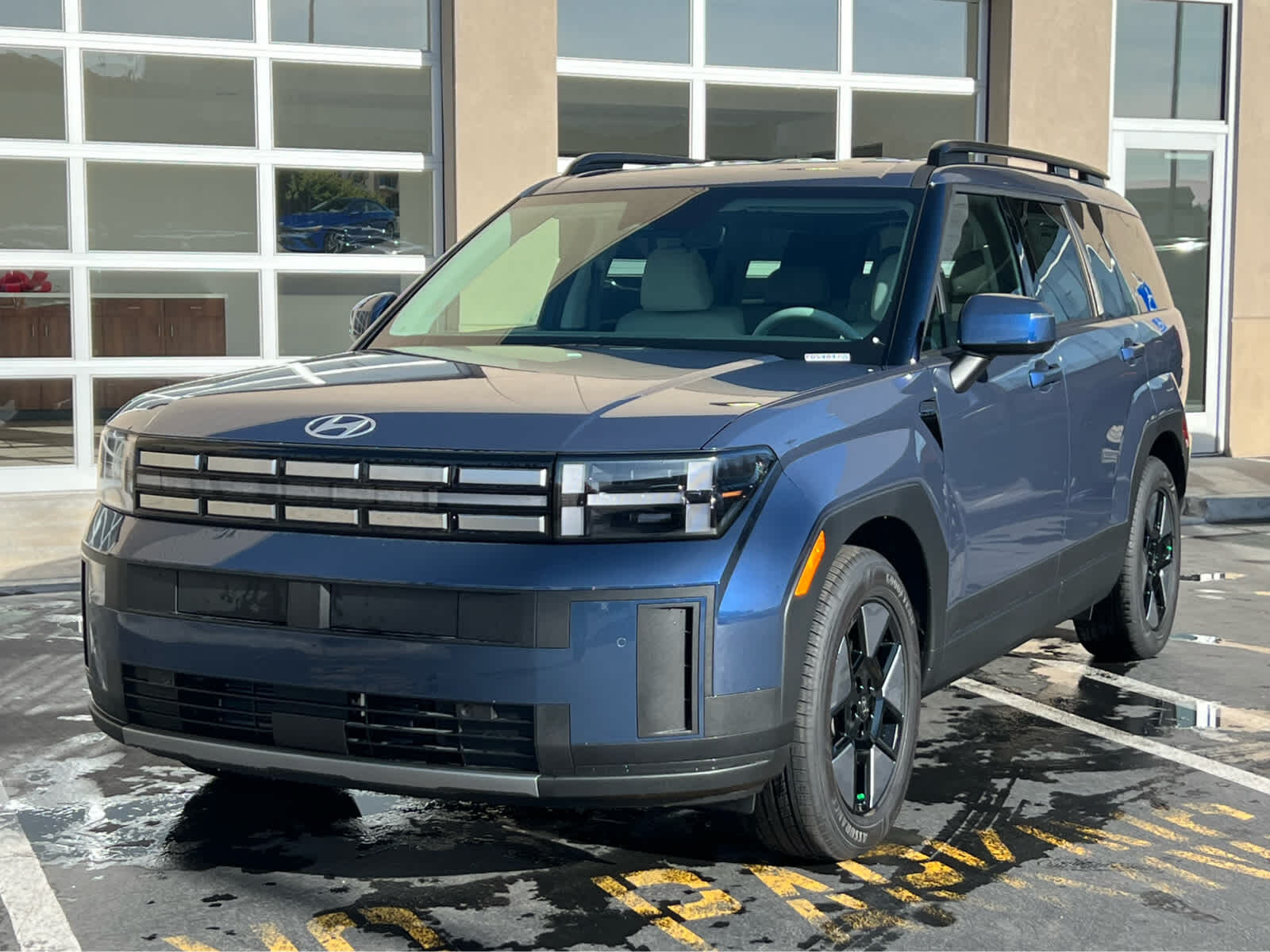 Third Row Seat, All Wheel Drive, Power Liftgate, Heated Driver Seat, Back-Up Camera, Turbocharged, Hybrid, Satellite Radio. Rear Spoiler, MP3 Player, Remote Trunk Release, Privacy Glass. Hyundai SEL with Atlantis Blue exterior and Gray interior features a 4 Cylinder Engine with 231 HP at 5500 RPM*.