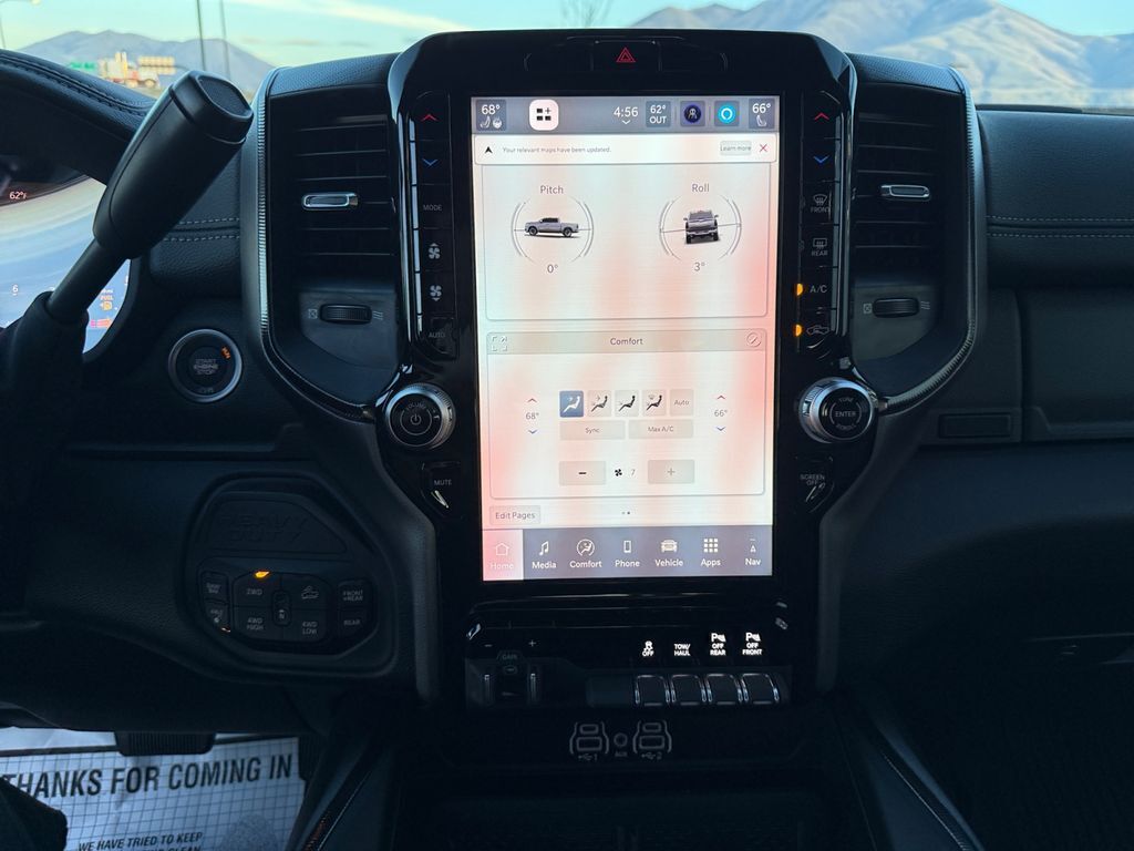 Bed Utility Group: MOPAR Spray in Bedliner; MOPAR Deployable Bed Step; LED Bed Lighting,Quick Order Package 2UP Power Wagon: Power Wagon Instrument Panel Spec Plate; RAM Articulink Suspension; 17" X 8.0" Black Painted Aluminum Wheels; 17" Steel Spare Wheel; Front Disconnecting Stabilizer Bar; Instrument Cluster Theme 5 - Power Wagon; Tru-Lok Front and Rear Axles; Goodyear Brand Tires; 4.10 Axle Ratio; Black Wheel Center Hub; Raised Ride Height; LT285/70R17D OWL AT Tires,Power Wagon Level 1 Equipment Group: Rain Sensitive Windshield Wipers; Power Adjustable Pedals with Memory; Body Color Door Handles; Auto Power-Folding Mirrors; Overhead LED Lamps; Exterior Mirrors with Heating Element; Auto Dim Exterior Mirror; MOPAR Rock Rails with Step Pad; Mirror Running Lights; Black Exterior Mirrors; Power-Adjustable Convex Aux Mirrors; Premium Overhead Console; Forward and Reverse Utility Lights; 9 Alpine Speakers with Subwoofer; Power Heated Fold Telescopic Mirrors with Memory; Exterior Mirrors with Supplemental Signals; Front Electric Winch; Sport Performance Hood; Exterior Mirrors Courtesy Lamps; Leather Trimmed Bucket Seats; Front Door Locks 2-Door Passive Entry; LED Interior Lighting; Auto High Beam Headlamp Control; LED Dome Lamp with On/off Switch; Universal Garage Door Opener; Exterior Mirrors with Memory; Power Adjust Mirrors; Power Telescoping Mirrors; MOPAR Front and Rear Rubber Floor Mats; Auto Dim Exterior Passenger Mirror; Sun Visors with Illuminated Vanity Mirrors; Auto Adjust in Reverse Exterior Mirrors,Front Electric Winch,MOPAR Rock Rails with Step Pad,Sport Performance Hood,Center Stop Lamp with Cargo View Camera,Diamond Black Crystal PC,MOPAR Front and Rear Rubber Floor Mats,Forward Collision Warning-Plus,Ventilated driver and front passenger seats,Integrated navigation system with voice activation,Blind Spot Detection,Heated steering wheel,Uconnect w/Bluetooth handsfree wireless device connectivity,Apple CarPlay/Android Auto smart device wireless mirroring,Heated driver and front passenger seats,Leather front seat upholstery,MOPAR retractable rear step,Driver seat with 8-way directional controls,Front passenger seat with 8-way directional controls,12 inch primary display,Pedestrian/Cyclist Emergency Braking,4G LTE Wi-Fi Hot Spot mobile hotspot internet access,ParkView rear mounted camera,Adaptive cruise control with stop and go,Brake assist system,Cruise control with steering wheel mounted controls,Heated rear seats,Primary monitor touchscreen,Cross Path Detection collision warning,Driver seat power reclining, lumbar support, cushion tilt, fore/aft control and height adjustable control,Part-time 4WD,HEMI 6.4L V-8 VVT variable valve control, regular unleaded, engine with cylinder deactivation and 405HP,Front wireless smart device charging,Alexa Built-In built-in virtual assistant,Smart key with hands-free access and push button start,Wireless audio streaming,Gauge cluster display size: 12.00,Pickup box camera,Following distance alert,Trailer light test,Dual-zone front climate control,Full gauge cluster screen,Auto high-beam headlights,Front anti-roll bar disconnect,Sentry Key immobilizer,Alpine speakers,Active noise cancellation,Connected Travel & Traffic Services real-time traffic,Trailer brake controller,Trailer sway control,Uconnect external memory control,Internet radio capability,9 USB ports,Digital/analog instrumentation display,Configurable instrumentation gauges,Front bumper winch,Power extendable trailer mirrors