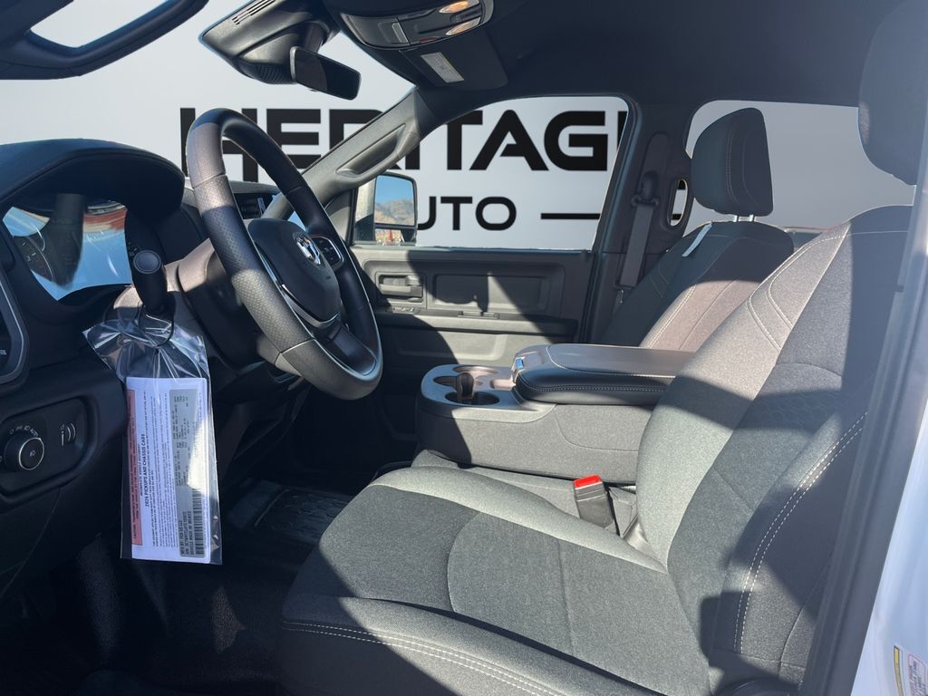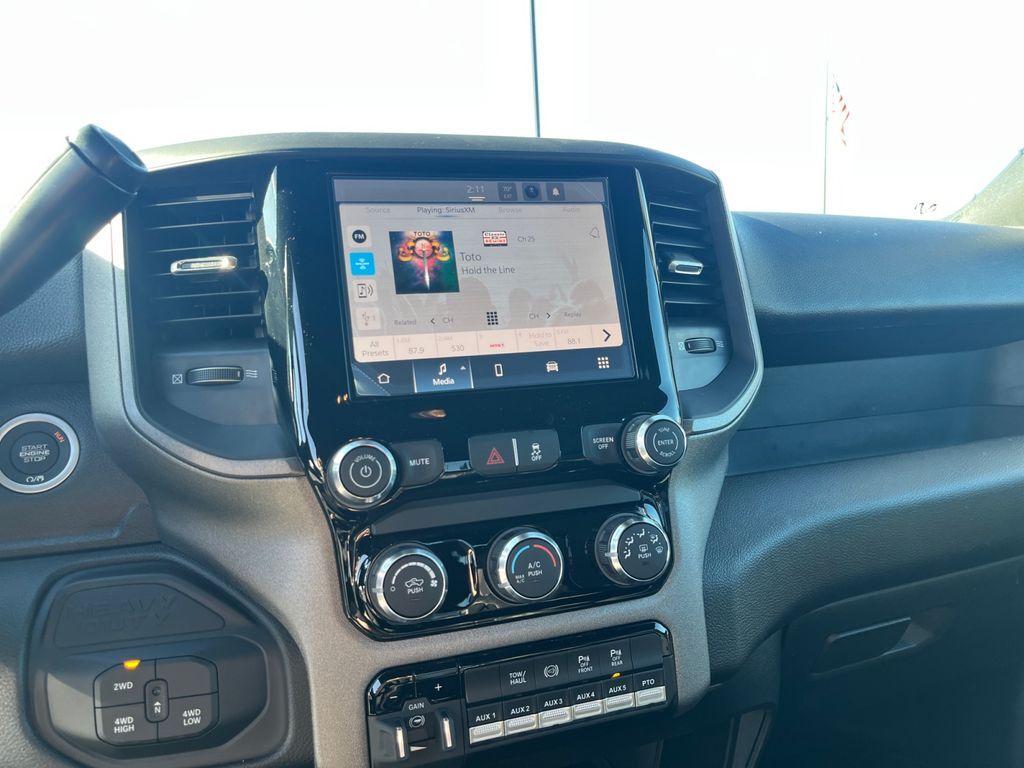 Forward Collision Warning-Plus,Uconnect w/Bluetooth handsfree wireless device connectivity,Apple CarPlay/Android Auto smart device wireless mirroring,Vinyl front seat upholstery,Driver seat with 4-way directional controls,Front passenger seat with 4-way directional controls,8.4 inch primary display,Pedestrian/Cyclist Emergency Braking,4G LTE Wi-Fi Hot Spot mobile hotspot internet access,Adaptive cruise control with stop and go,Cruise control with steering wheel mounted controls,Primary monitor touchscreen,Part-time 4WD,Cummins 6.7L I-6 diesel direct injection, VVT intercooled turbo, diesel, engine with 360HP,Bluetooth wireless audio streaming,Following distance alert,Keyless Go with push button start,Sentry Key immobilizer,RAM Connect vehicle tracker,RAM Connect vehicle integrated emergency SOS system,Trailer sway control,External memory control,Internet radio capability,5 USB ports,Electronic stability control system,Rear Seat Reminder Alert rear seat check warning,LED front fog lights,Active grille shutters,Manual rear child safety door locks,RAM Connect App mobile app access,Illuminated front beverage holders,Gauge cluster display size: 3.50,Manual tilting steering wheel,Wheel hub covers,Manual extendable trailer mirrors,Upfitter switches,18 x 8-inch front and rear argent steel wheels,Over the air updates,LT275/70SR18 AT BSW 614 RPM front and rear tires,2 airbags,Driver front impact airbag,Passenger front impact airbag,Airbag occupancy sensor,Auto-locking doors,Valet key,Intercooled turbo,8-speed automatic,Selectable mode transmission,Vinyl rear seat upholstery,Manual climate control