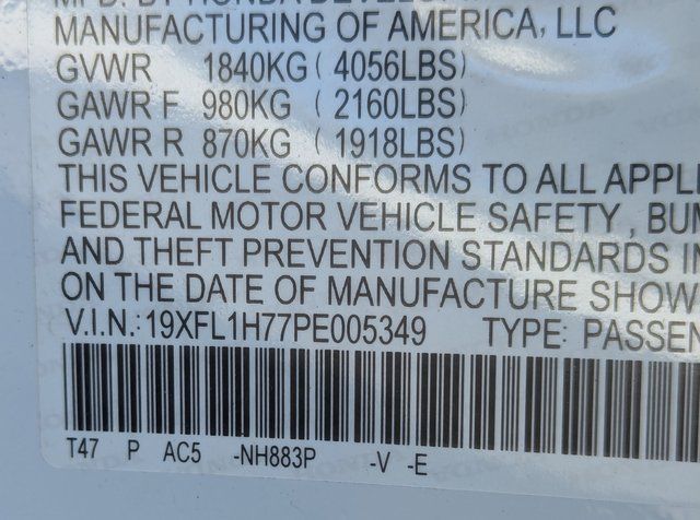 White 2023 Honda Civic EX-L FWD CVT 1.5L I4 DOHC 16V Black Leather.