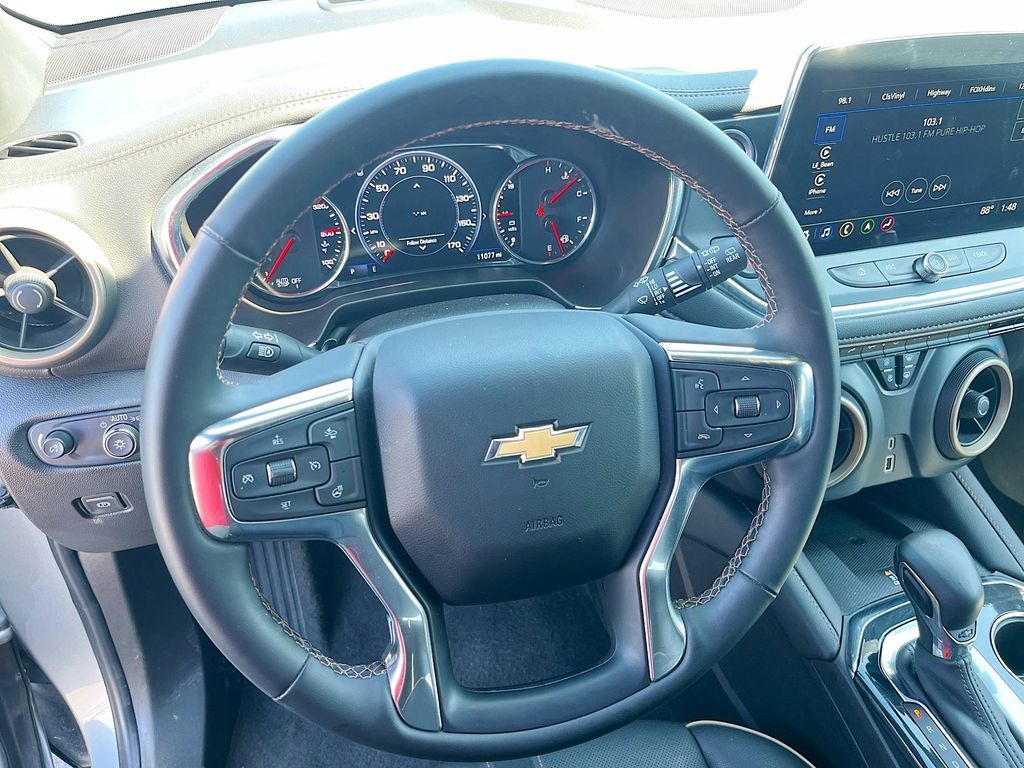 Explore the 2024 Chevrolet Blazer FWD Premier at AutoSavvy Las Vegas, where style meets innovation. This sophisticated SUV, finished in Sterling Metallic with a Jet Black interior, is powered by a 2.0L I-4 turbocharged engine, delivering a robust 228 horsepower. With only 10,318 miles, this vehicle promises reliability and longevity. Enjoy impressive fuel efficiency with 29 MPG on the highway and 22 MPG in the city. The Blazer Premier is equipped with premium features such as Apple CarPlay/Android Auto, a Bose Premium 8-Speaker Audio System, and a 10.2-inch touchscreen display. Experience comfort and luxury with simulated suede and leather front seat upholstery, heated front seats, and a power-adjustable driver's seat. Safety is enhanced with advanced systems like Adaptive Cruise Control, Blind Spot Monitor, and Enhanced Automatic Emergency Braking. The current status of the title is branded. At AutoSavvy Las Vegas, transparency and quality are our top priorities. Each vehicle undergoes rigorous inspections to ensure optimal performance and safety. As a Savvy Certified vehicle, this Chevrolet Blazer comes with the assurance of our 4-month/4,500-mile warranty, providing you with added confidence and peace of mind in your purchase. Visit AutoSavvy Las Vegas today to experience the perfect blend of technology, efficiency, and style that the 2024 Chevrolet Blazer FWD Premier offers.