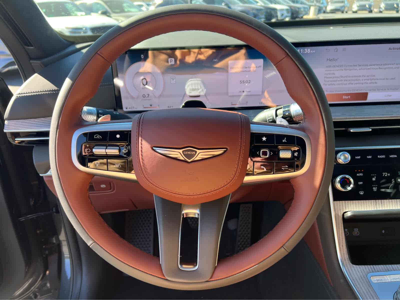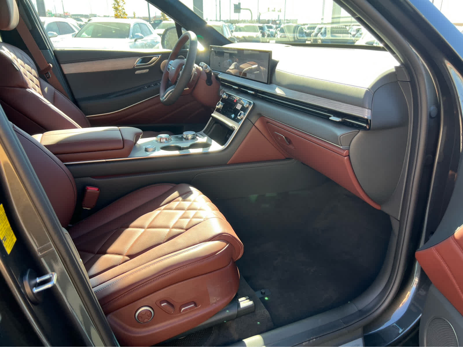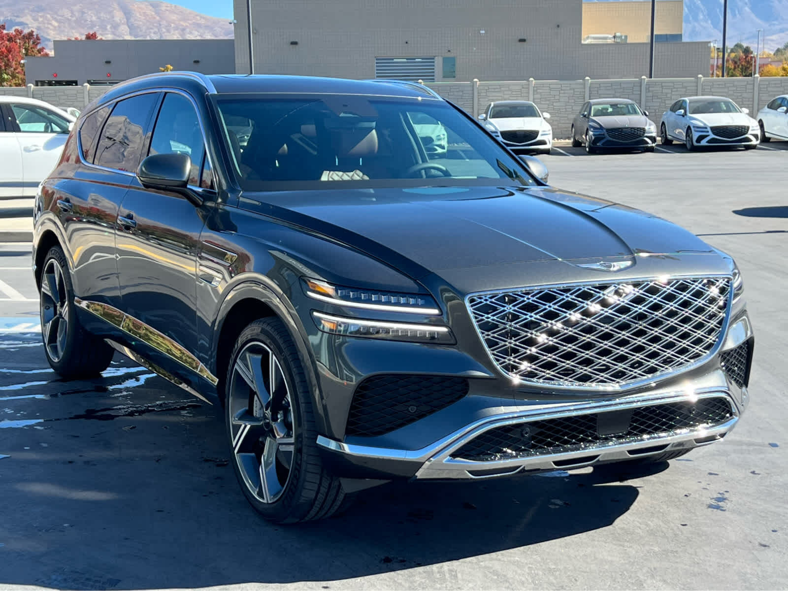Leather Seats, Third Row Seat, Navigation, All Wheel Drive, Power Liftgate, Rear Air, Heated Driver Seat, Heated Rear Seat. Rear Spoiler, MP3 Player, Privacy Glass, Keyless Entry. Genesis Advanced with Vik Black exterior and Earth Brown/Smoky Green interior features a V6 Cylinder Engine with 375 HP at 5800 RPM*.