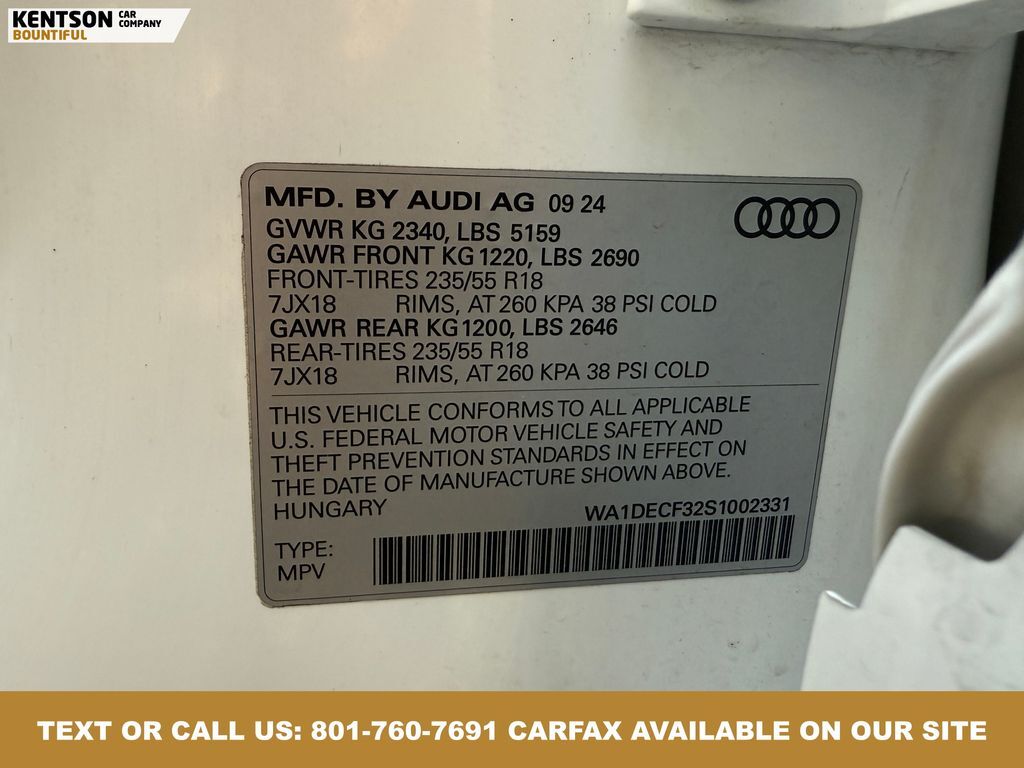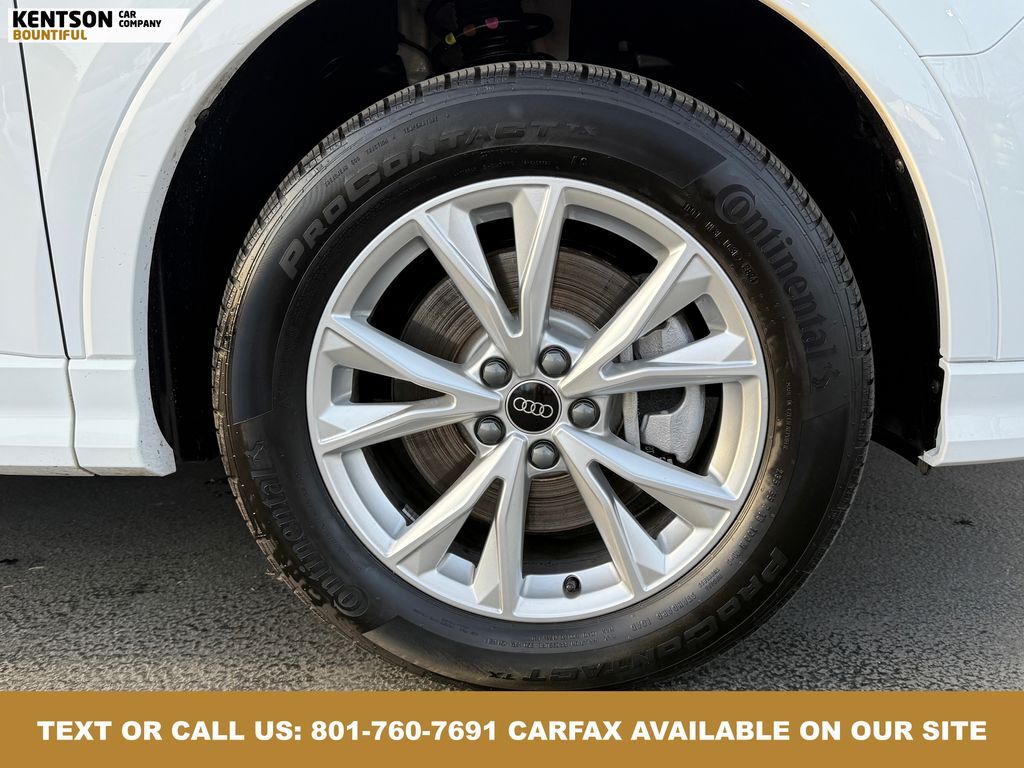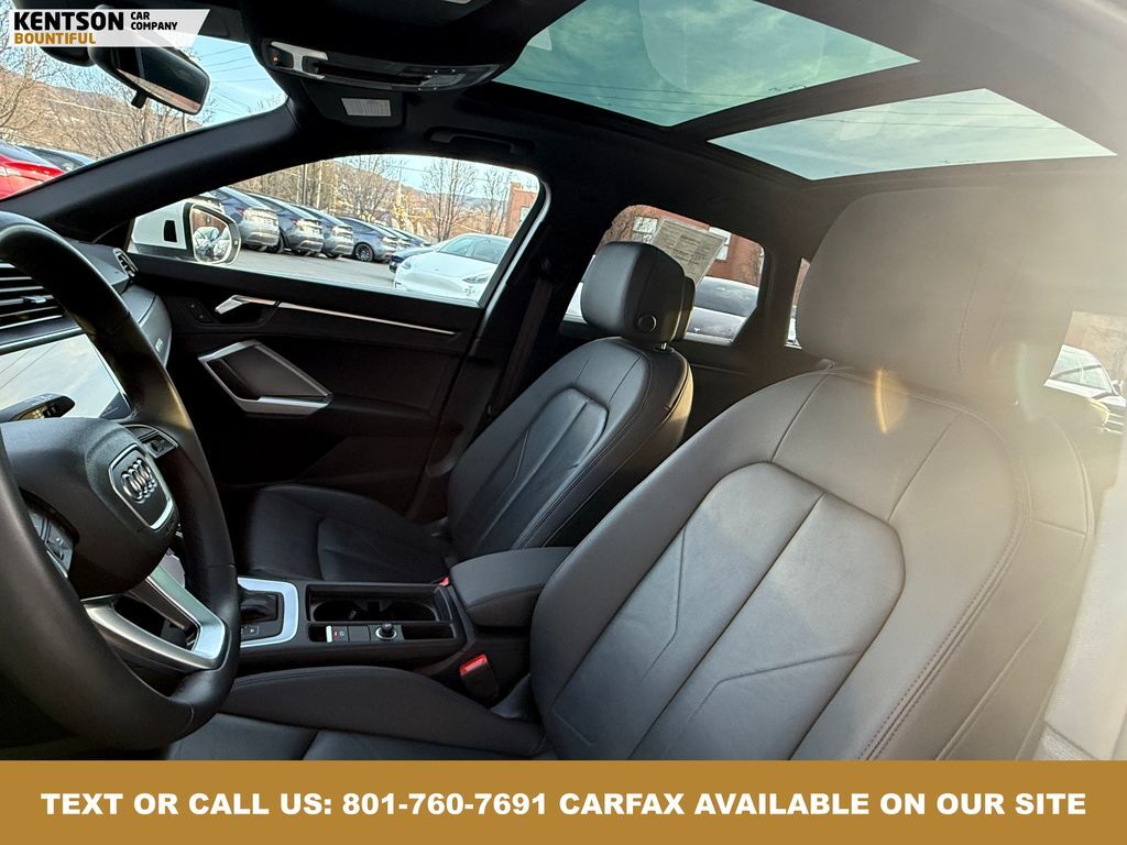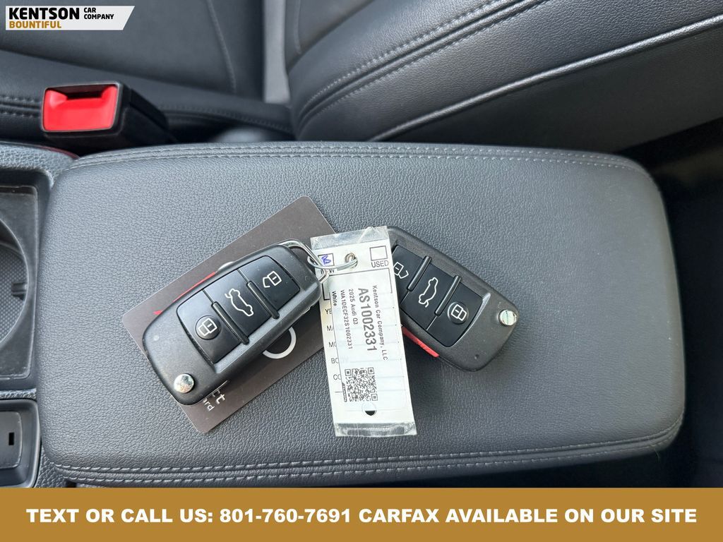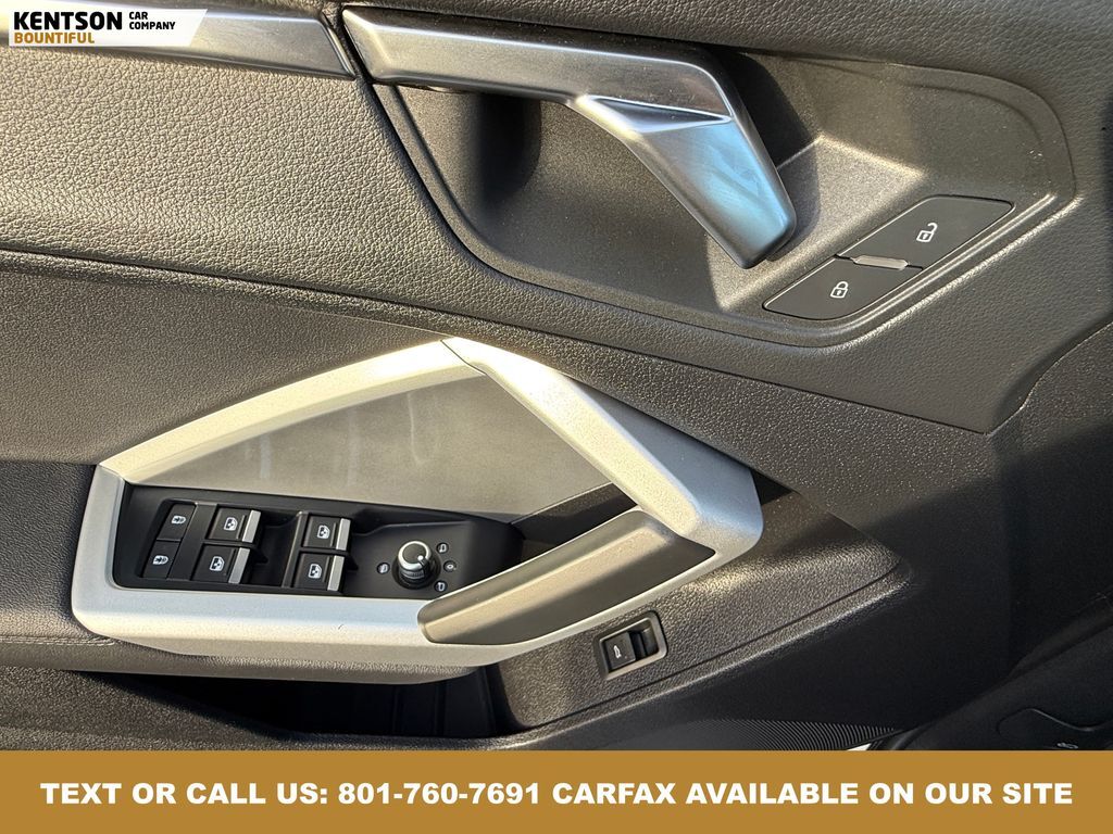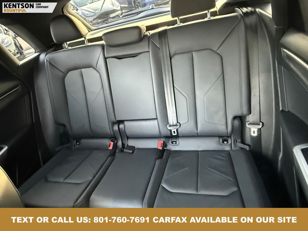 10 Speakers, 4-Wheel Disc Brakes, ABS brakes, Air Conditioning, Alloy wheels, AM/FM radio, Audi smartphone interface (Apple CarPlay/Android Auto), Auto High-beam Headlights, Automatic temperature control, Brake assist, Bumpers: body-color, Delay-off headlights, Driver door bin, Driver vanity mirror, Dual front impact airbags, Dual front side impact airbags, Electronic Stability Control, Emergency communication system: Audi connect CARE, Exterior Parking Camera Rear, Four wheel independent suspension, Front anti-roll bar, Front Bucket Seats, Front Center Armrest, Front dual zone A/C, Front fog lights, Front reading lights, Fully automatic headlights, Heated door mirrors, Heated Front Bucket Seats, Heated front seats, Illuminated entry, Knee airbag, Leather Seating Surfaces, Leather Shift Knob, Leather steering wheel, Low tire pressure warning, Occupant sensing airbag, Outside temperature display, Overhead airbag, Overhead console, Panic alarm, Passenger door bin, Passenger vanity mirror, Power door mirrors, Power driver seat, Power Liftgate, Power moonroof: Panoramic, Power passenger seat, Power steering, Power windows, Radio data system, Radio: Audi Sound System, Rain sensing wipers, Rear air conditioning, Rear anti-roll bar, Rear reading lights, Rear seat center armrest, Rear window defroster, Rear window wiper, Remote keyless entry, Speed control, Speed-sensing steering, Split folding rear seat, Spoiler, Steering wheel mounted audio controls, Tachometer, Telescoping steering wheel, Tilt steering wheel, Traction control, Trip computer, Turn signal indicator mirrors, Variably intermittent wipers, and Wheels: 18'' 5-V-Spoke-S Design.