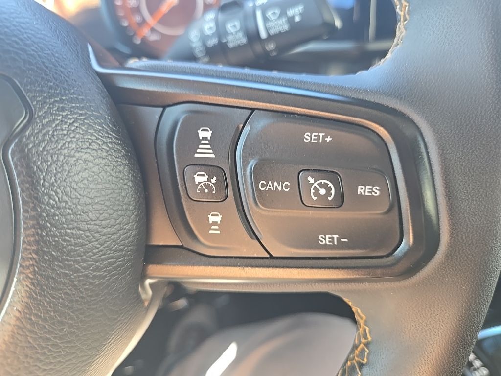 Equipped with a 3-piece hard top, you’ll enjoy the freedom to switch between open-air driving and weather-tight protection with ease. Adaptive Cruise Control adds extra comfort and confidence on longer drives, combining classic Jeep toughness with advanced technology.