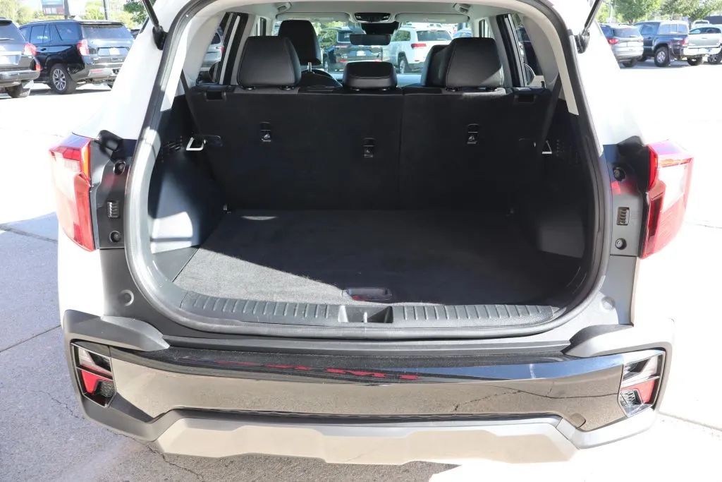 Rear Automatic emergency braking, Front Pedestrian Automatic emergency braking, Front Automatic emergency braking, Lane keeping assist, Check rear seat reminder, Pedestrian Detection Pre-collision warning system, Driver attention alert system, Audible Warning Pre-collision warning system, Visual Warning Pre-collision warning system, Vehicle exit safety system, Sensor/alert Blind spot safety, Rear Cross traffic alert, Lane deviation sensors, Rearview Camera system, Front Side airbags, Rear Side curtain airbags, Front Side curtain airbags, 4-wheel ABS, Anti-lockout Power door locks, Cornering brake control, Auto-locking Power door locks, Hill Descent Off-road driving assist, Alarm Anti-theft system, Braking assist, Hill holder control, Disc Rear brake, Ventilated Disc Front brake, Dual Front airbags, Vehicle Immobilizer Anti-theft system, Power brakes, LATCH System Child seat anchors, Electronic brakeforce distribution, Stability control, Traction control, In Dash Rearview monitor, Occupant Sensing Passenger Airbag deactivation, Front Seatbelt pretensioners, Front Seatbelt force limiters, Front Emergency locking retractors, Rear Emergency locking retractors, Front Seatbelt warning sensor, Lane Centering Autonomous lane guidance, Proximity Entry System Multi-function remote, Leather Steering wheel trim, Automatic Climate Control Front air conditioning, Push-button start, Heated Driver seat, Leather Shift knob trim, Remote engine start, Heated Passenger seat, Dual Level Cargo Area Storage, Variable/speed-proportional Power steering, Cruise control, Cloth Upholstery, Leatherette Upholstery accents, Bucket Front seat, 10.25 In. Instrument cluster screen size, Humidity/dewpoint sensors, Chrome Interior accents, 60-40 Split Bench Rear seat, Leatherette Dash trim, Leatherette Center console trim, Air filtration, In Floor Storage, Split Rear seat folding, USB Front Power outlet(s), USB-C Front Power outlet(s), USB-C Rear Power outlet(s), 12V Front Power outlet(s), Tilt And Telescopic Steering wheel, Second Row Rear vents, Multi-function display, Front Console With Armrest And Storage Center console, Compass, Rear Center With Cupholders Armrests, Rear Folding Armrests, External temperature display, MPG Fuel economy display, Range Fuel economy display, 6 Driver seat manual adjustments, Front Reading lights, Tachometer Gauge, Reclining Rear seat manual adjustments, Door Courtesy lights, Manual Day/night Rearview mirror, Rear Reading lights, Front Cupholders, Front Overhead console, Rear Cupholders, Cargo area light, 1 One-touch windows, Panic Alarm Multi-function remote, Audio Steering wheel mounted controls, Dual Vanity mirrors, Cargo Tie-down Anchors And Hooks Storage, Carpet Floor material, Cruise Control Steering wheel mounted controls, Phone Steering wheel mounted controls, Voice Control Steering wheel mounted controls, Single Front air conditioning zones, Organizer Tray Center console, Painted Aluminum Alloy Wheels, Auto High Beam Dimmer Headlights, LED Daytime running lights, LED Taillights, Power windows, Power Side mirror adjustments, Heated Side mirrors, Acoustic Windshield Laminated glass, Front fog lights, Steel Spare wheel, Black Roof rails, Intermittent Rear wiper, Rear Window defogger, Variable Intermittent Front wipers, Rear privacy glass, With Washer Rear wiper, Tire Pressure Monitoring System, Integrated Turn Signals Side mirrors, Roofline Rear spoiler, Black With Chrome Accents Grille color, Front Driver And Passenger Tinted glass, Windshield Tinted glass, Auto On/off Headlights, Rear Skid plate(s), Front Skid plate(s), Chrome Window trim, Auto Delay Off Headlights, Temporary Spare tire size, Chrome Exhaust tip color, Black Fender lip moldings, Fixed Liftgate window, Liftgate Rear trunk/liftgate, Black Rear bumper color, Manual Folding Side mirror adjustments, Hard Drive Navigation system, Touch Screen Display Navigation system, Voice Operated Navigation system, Apple CarPlay Smartphone integration, Android Auto Smartphone integration, Kia Access Smart device app compatibility, 10.25 In. Infotainment screen size, Bluetooth Wireless data link, Voice Operated Hands-free phone call integration, Voice Operated Radio, Bluetooth Auxiliary audio input, Engine Start Smart device app function, Touch Screen Display Radio, Real Time Traffic Navigation data, With Read Function Electronic messaging assistance, Voice Operated Electronic messaging assistance, SiriusXM Satellite radio, 6 Total speakers, USB Auxiliary audio input, IPod/iPhone Auxiliary audio input, Vehicle Location Smart device app function, Lock Operation Smart device app function, Kia Connect Infotainment, Horn/light Operation Smart device app function, Maintenance Status Smart device app function, Maintenance Scheduling Smart device app function, Roadside Assistance Driver assistance app, AM/FM Radio, Radio data system, Speed sensitive volume control, Google POIs Connected in-car apps, Google Search Connected in-car apps, Auto start/stop, Center Locking differential, Full Time 4WD, Drive mode selector, Independent Front suspension classification, Independent Rear suspension classification, MacPherson Front struts, Multi-link Rear suspension, 130 Amps Alternator, Front stabilizer bar, Rear stabilizer bar, Battery saver