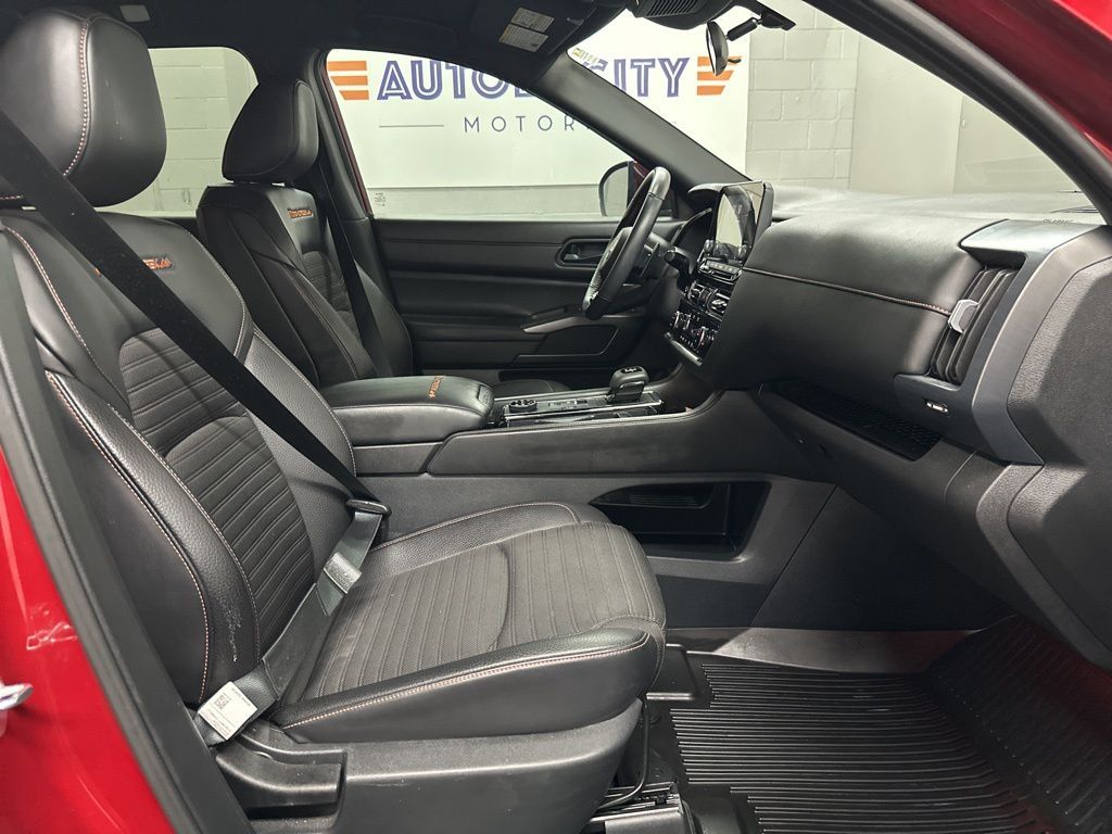 2024 Nissan Pathfinder Rock Creek with 9,229 miles! COMPASS, BACKUP CAMERA, HEATED FRONT LEATHER SEATS, DUAL CLIMATE, REAR CLIMATE, PARKING AID, BLINDSPOT MONITOR, LANE DEPARTURE/ASSIST, FORWARD COLLISION, REMOTE ENGINE START, 3RD ROW 7 PASSENGER SEATING, ALLOY WHEELS, WIFI, BLUETOOTH, SIRIUS XM, APPLE CARPLAY, ANDROID AUTO, USB, USBC.