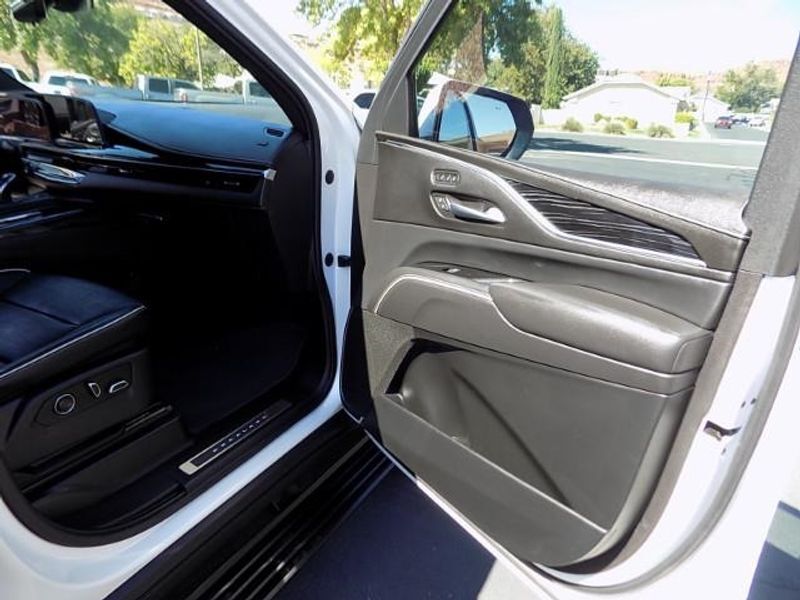 One Owner Cadillac Escalade Sport with 6.2L V8! Amazing Condition Inside and Out! Loaded with all the right options! Driver Assist Tech Package with Air Rid Suspension, Soft Closing Doors, Adaptive Cruise Control, Enhanced Front and Rear Braking, Black Wheels, Dual Screen Rear Media System, Power Running Boards, Heated and Cooled Front Seats, Heated 2nd Row Bucket Seats, Power Folding 2nd and 3rd Row Seats, Panoramic Sunroof, Power Liftgate, AKG Stereo, Surround Vision Camera, Magnetic Ride Control, and more! Too many options to list! Come in for a Closer Look Today!