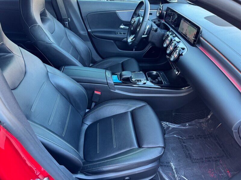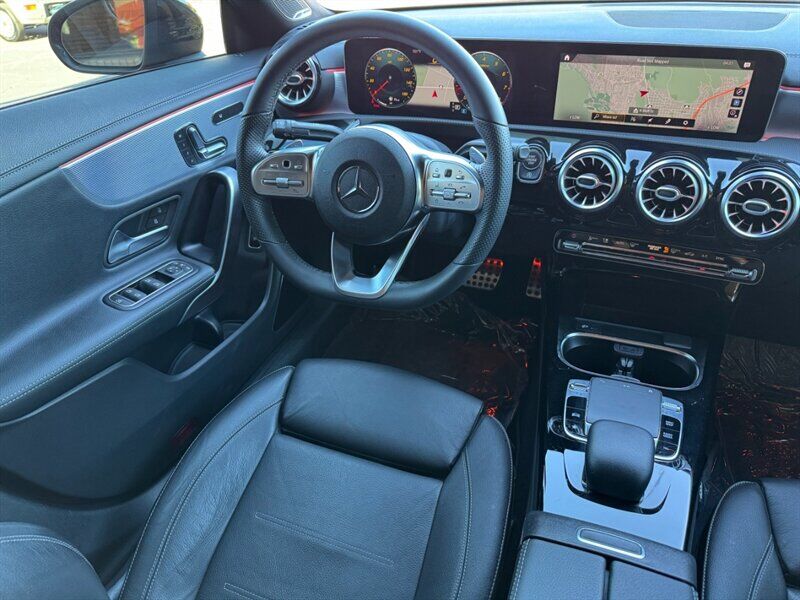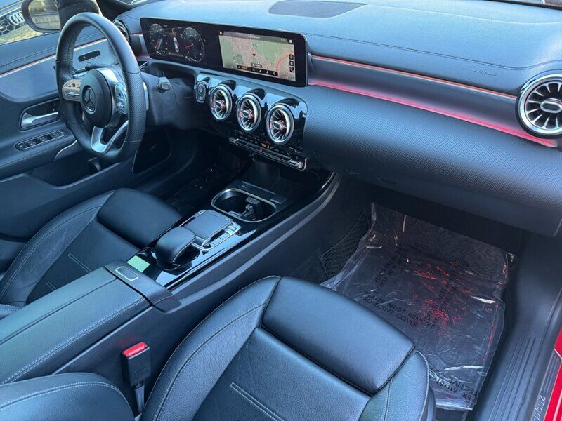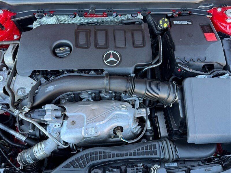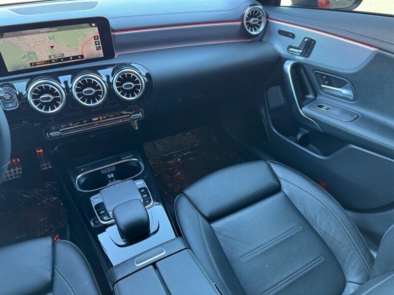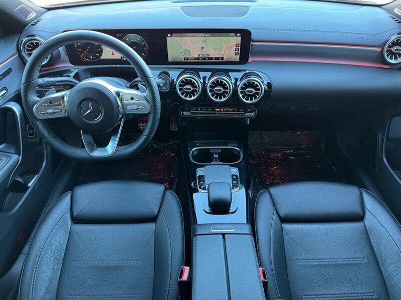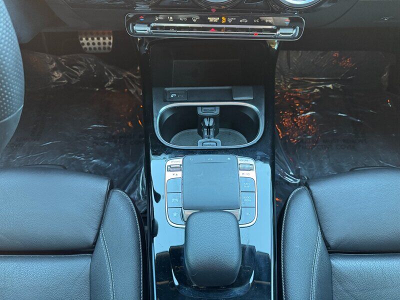 INSTALLED FEATURES: Air filtration: active charcoal, Front air conditioning: automatic climate control, Front air conditioning zones: dual, Rear vents: second row, Airbag deactivation: occupant sensing passenger, Front airbags: dual, Knee airbags: dual front, Side airbags: front, Side curtain airbags: front / rear, Antenna type: element, Auxiliary audio input: Bluetooth / iPod/iPhone / memory card slot / USB, Radio: AM/FM / HD radio / touch screen display / voice operated, Radio data system, Speed sensitive volume control, Total speakers: 8, ABS: 4-wheel, Brake drying, Braking assist, Cornering brake control, Electronic brakeforce distribution, Electronic parking brake: auto off, Emergency braking preparation, Front brake type: ventilated disc, Power brakes, Rear brake type: disc, Armrests: rear center folding with pass-thru / rear center with cupholders, Cargo area floor mat: carpet, Dash trim: aluminum, Door trim: aluminum, Floor mat material: carpet, Floor material: carpet, Floor mats: front / rear, Interior accents: aluminum, Steering wheel trim: leather, Ambient lighting, Cargo area light, Center console: front console with armrest and storage, Cruise control, Cupholders: front / rear, Easy entry: power driver seat, Gesture infotainment controls, Memorized settings: 3 driver / driver seat / passenger seat / side mirrors, Multi-function remote: keyless entry / panic alarm / trunk release, One-touch windows: 4, Overhead console: front, Power outlet(s): 115V rear / 12V cargo area / 12V front, Power steering: variable/speed-proportional, Power windows: lockout button, Push-button start, Reading lights: front / rear, Rearview mirror: manual day/night, Steering wheel: tilt and telescopic, Steering wheel mounted controls: audio / cruise control / multi-function / paddle shifter / phone / voice control, Storage: door pockets / front seatback / sunglasses holder, Touch-sensitive controls, Vanity mirrors: dual illuminating, Door handle color: body-color, Exhaust: dual tip / integrated, Exhaust tip color: chrome, Front bumper color: body-color, Grille color: black with chrome accents, Mirror color: body-color, Rear bumper color: body-color, Window trim: chrome, Connected in-car apps: Google POIs / Google search, Infotainment: MBUX, Infotainment screen size: 7 in., Smartphone integration: Android Auto / Apple CarPlay, Clock, Digital odometer, External temperature display, Fuel economy display: MPG / range, Gauge: tachometer, Instrument cluster screen size: 7 in., Multi-function display, Trip odometer, Warnings and reminders: coolant temperature warning / lamp failure / low fuel level / low oil pressure / maintenance due, Daytime running lights: LED, Exterior entry lights: approach lamps, Headlights: auto delay off / auto on/off / LED, Rear fog lights, Taillights: LED, Side mirror adjustments: manual folding / power / reverse gear tilt, Side mirrors: heated / integrated turn signals, Alternator: 115 amps, Auto start/stop, Battery: maintenance-free, Drive mode selector, Moonroof / Sunroof: anti-trapping / one-touch open/close / power panoramic / power sunshade / tilt/slide, Automatic emergency braking: front, Camera system: rear multi-view, Child safety door locks, Child seat anchors: LATCH system, Crumple zones: front / rear, Driver attention alert system, Emergency interior trunk release, Impact sensor: battery disconnect / door unlock / fuel cut-off / post-collision safety system, Pre-collision warning system: audible warning / visual warning, Rearview monitor: in dash, Emergency locking retractors: front / rear, Front seatbelts: 3-point, Rear seatbelts: 3-point, Seatbelt force limiters: front / rear, Seatbelt pretensioners: front / rear, Seatbelt warning sensor: front, Driver seat power adjustments: 12 / 4-way power lumbar / height / reclining, Front headrests: 2 / integrated, Front seat type: bucket, Passenger seat power adjustments: 12 / 4-way power lumbar / height / reclining, Rear headrests: 3 / integrated, Rear seat folding: split, Rear seat type: 40-20-40 split bench, Upholstery: leatherette, Anti-theft system: alarm / vehicle immobilizer, Power door locks: auto-locking, Crosswind stabilization, Hill holder control, Stability control, Traction control, Front shock type: twin-tube gas, Front spring type: coil, Front stabilizer bar, Front struts: MacPherson, Front suspension classification: independent, Front suspension type: lower control arms, Rear shock type: gas, Rear spring type: coil, Rear stabilizer bar, Rear suspension classification: independent, Rear suspension type: multi-link, Driver assistance app: roadside assistance, Electronic messaging assistance: voice operated / with read function, Hands-free phone call integration: voice operated, Smart device app compatibility: Mercedes me, Smart device app function: engine start / horn/light operation / lock operation / maintenance status / vehicle location, Wi-Fi: hotspot compatible, Wireless data link: Bluetooth, Run flat tires, Tire Pressure Monitoring System, Wheel spokes: multi-spoke, Wheels: aluminum alloy, Front wipers: rain sensing / speed sensitive / variable intermittent, Power windows: safety reverse, Window defogger: rear