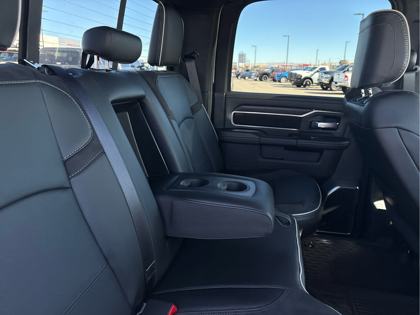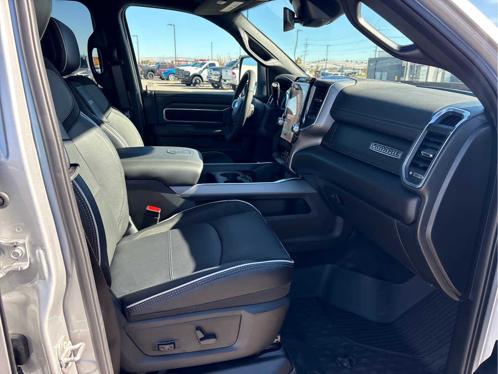 ENGINE: 6.7L I6 CUMMINS HO TURBO DIESEL Selective Catalytic Reduction (Urea), Dual 730 Amp Maintenance Free Batteries, Cummins Turbo Diesel Badge, Heavy Duty Engine Cooling, Current Generation Engine Controller, Diesel Exhaust Brake, Supplemental Heater, 3.42 Axle Ratio, Front Bumper Sight Shields, Capless Fuel Fill w/o Discriminator, TOWING TECHNOLOGY GROUP CTR Stop Lamp w/Cargo View Camera, Surround View Camera System, Trailer Tire Pressure Monitoring System, Trailer Reverse Guidance, LARAMIE LEVEL 1 PLUS EQUIPMENT GROUP CTR Stop Lamp w/Cargo View Camera, Rain Sensitive Windshield Wipers, Power Adjustable Pedals w/Memory, LED Bed Lighting, Traffic Sign Recognition, Adaptive Steering System, Auto Dimming Exterior Mirrors, Drowsy Driver Detection, MOPAR Deployable Bed Step, Foam Bottle Insert (Door Trim Panel), Active Lane Management System, Power Heat Fold Memory Telescopic Mirrors, MOPAR Spray In Bedliner, Remote Tailgate Release, Auto High Beam Headlamp Control, Exterior Mirrors w/Memory, 2nd Row In Floor Storage Bins, Auto Dimming Exterior Passenger Mirror, Auto Adjust In Reverse Exterior Mirrors, MOPAR FRONT & REAR RUBBER FLOOR MATS, TRANSMISSION: 8-SPEED TORQUEFLITE HD AUTOMATIC, BLACK, LEATHER TRIMMED BUCKET SEATS Bucket Seats, Dual Wireless Charging Pad, Full Length Upgraded Floor Console.