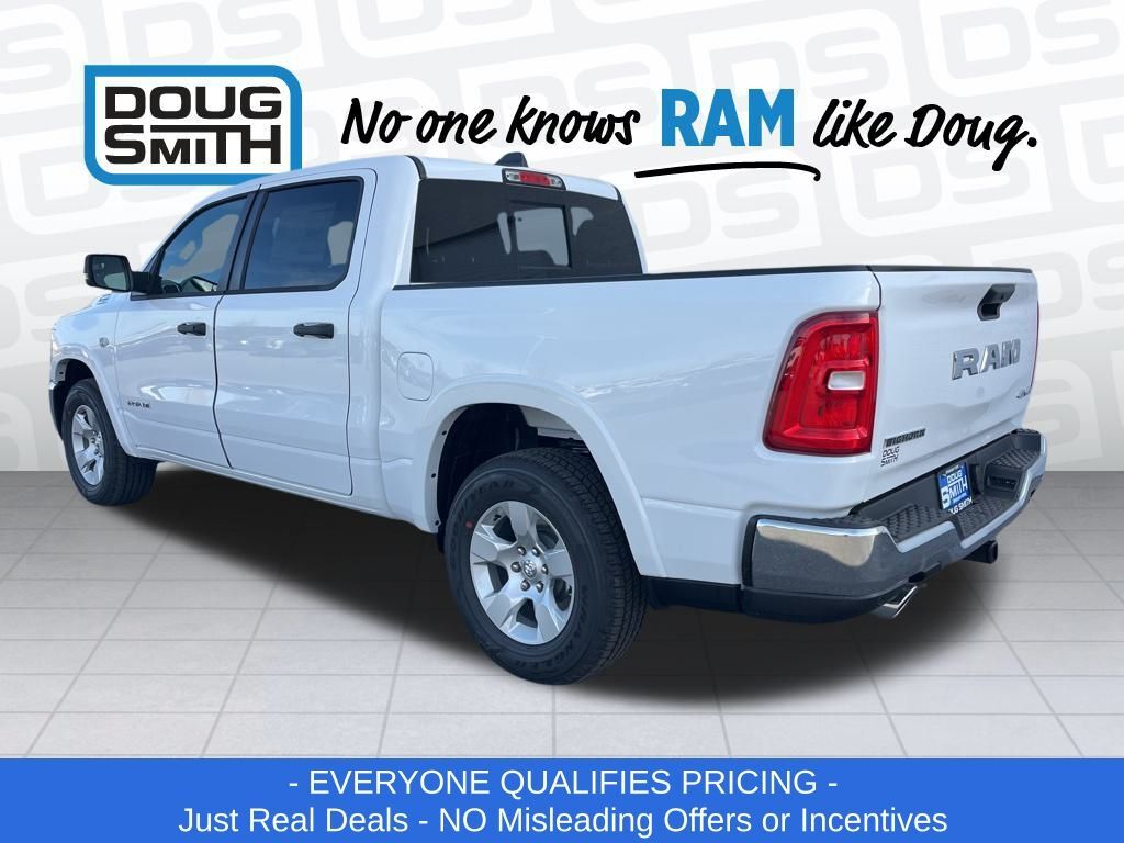 Bright White Clearcoat 2026 Ram 1500 Big Horn/Lone Star 4WD 8-Speed Automatic HEMI 5.7L V8 Multi Displacement VVT eTorque Price includes: $3500 - 2026 National Retail Consumer Cash . Exp. 03/02/2026 - Advertised Price reflects a $1,500 Financing Discount. To qualify for this discount, customer must secure credit approval and finance with a dealership lender. Cash purchases or outside financing will void the discount, increasing the final price by $1,500. Exp. 02/28/2026 - See Doug Smith CDJR for full details. - Sale Price Includes: $1,500 Trade-In Allowance Incentive Program for customers that trade in a 2015 or newer passenger vehicle with 100,000 miles or less. - Offer Exp. 02/28/2026 - See Doug Smith CDJR for full details.