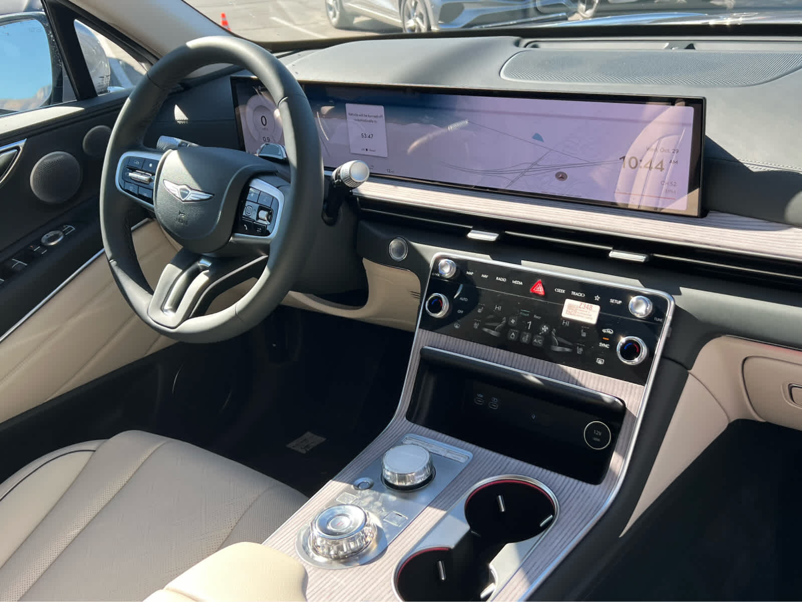 Leather Seats, Third Row Seat, Navigation, All Wheel Drive, Power Liftgate, Rear Air, Heated Driver Seat, Cooled Driver Seat. Rear Spoiler, MP3 Player, Remote Trunk Release, Privacy Glass. Genesis Advanced with Savile Silver exterior and Vanilla Beige/Smoky Green interior features a 4 Cylinder Engine with 300 HP at 5800 RPM*.