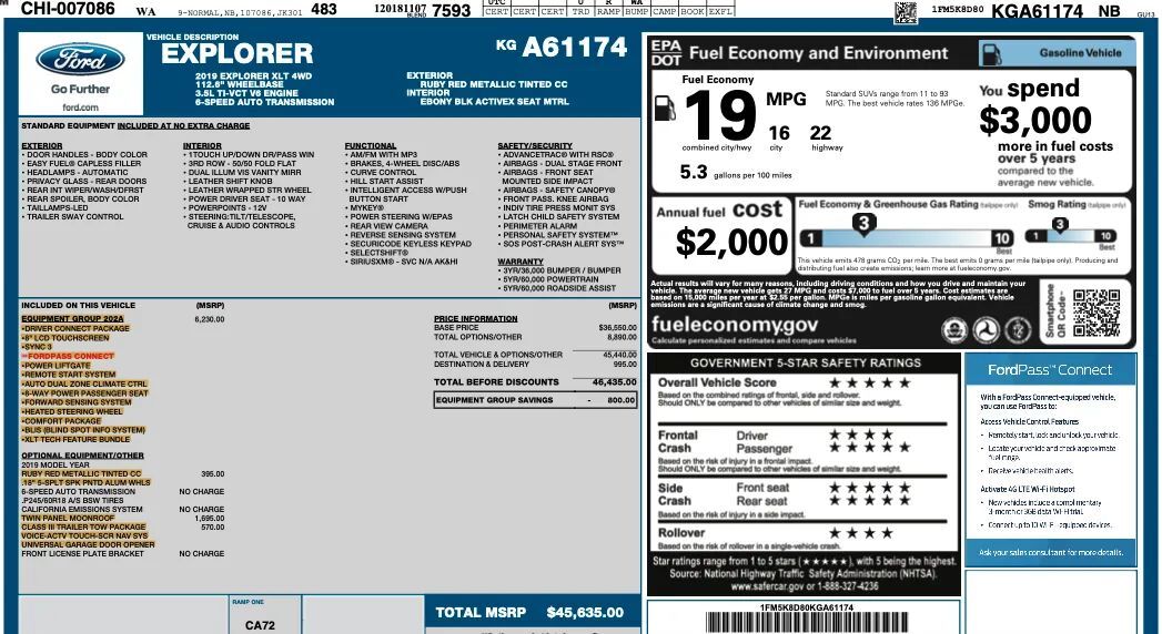 EQUIPMENT GROUP 202ADRIVER CONNECT PACKAGE8" LCD TOUCHSCREENSYNC 3FORDPASS CONNECTPOWER LIFTGATEREMOTE START SYSTEMAUTO DUAL ZONE CLIMATE CTRL8-WAY POWER PASSENGER SEATFORWARD SENSING SYSTEMHEATED STEERING WHEELCOMFORT PACKAGEBLIS (BLIND SPOT INFO SYSTEM)XLT TECH FEATURE BUNDLERUBY RED METALLIC TINTED CC18" 5-SPLT SPK PNTD ALUM WHLSTWIN PANEL MOONROOFCLASS III TRAILER TOW PACKAGEVOICE-ACTV TOUCH-SCR NAV SYSUNIVERSAL GARAGE DOOR OPENER
