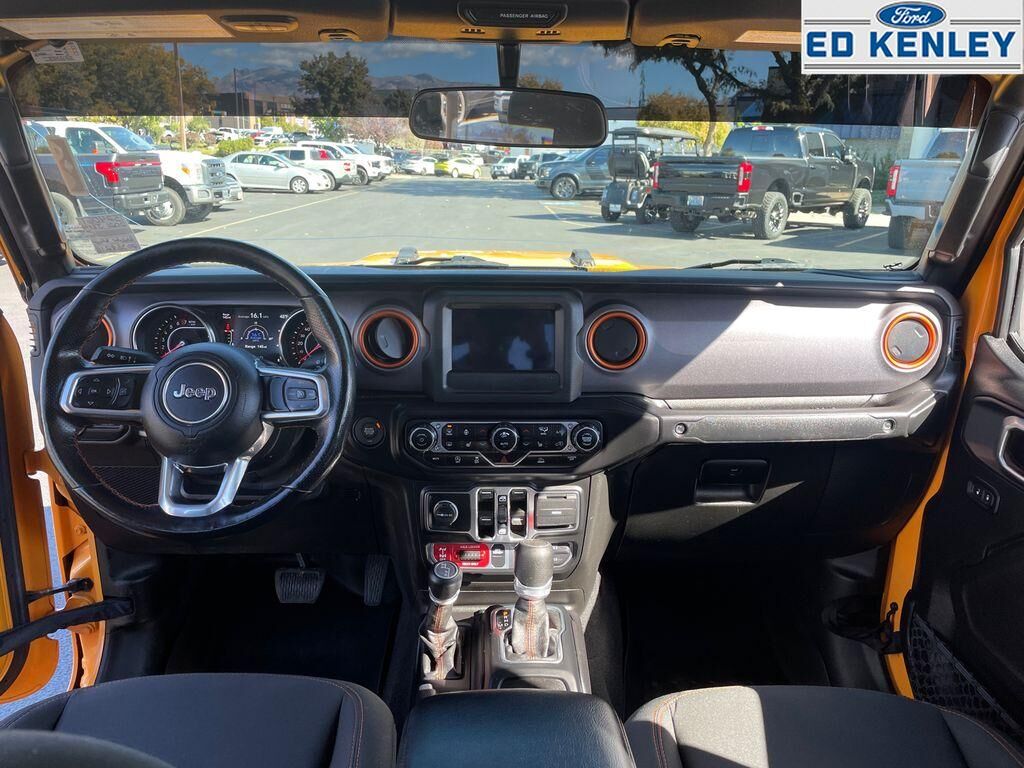 Bluetooth technology is built into this unit, keeping your hands on the steering wheel and your focus on the road. See what's behind you with the back up camera on this vehicle. This 2021 Jeep Gladiator offers Android Auto for seamless smartphone integration. Apple CarPlay: Seamless smartphone integration for this unit - stay connected and entertained on the go! Keep your hands warm all winter with a heated steering wheel in it . This 2021 Jeep Gladiator keeps you comfortable with Auto Climate. Start this 1/2 ton pickup from inside with remote start. Our dealership has already run the CARFAX report and it is clean. A clean CARFAX is a great asset for resale value in the future. This 2021 Jeep Gladiator has an attractive deep orange exterior. This model has four wheel drive capabilities. The Jeep Gladiator has a V6, 3.6L high output engine. Quickly unlock this model with keyless entry.