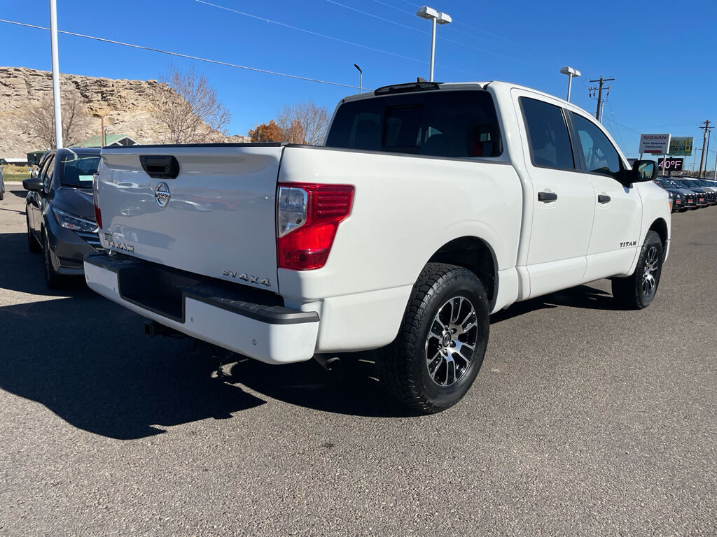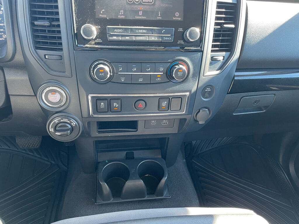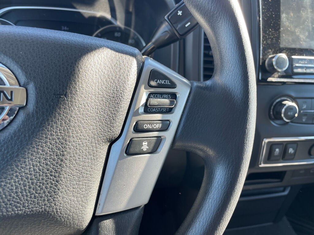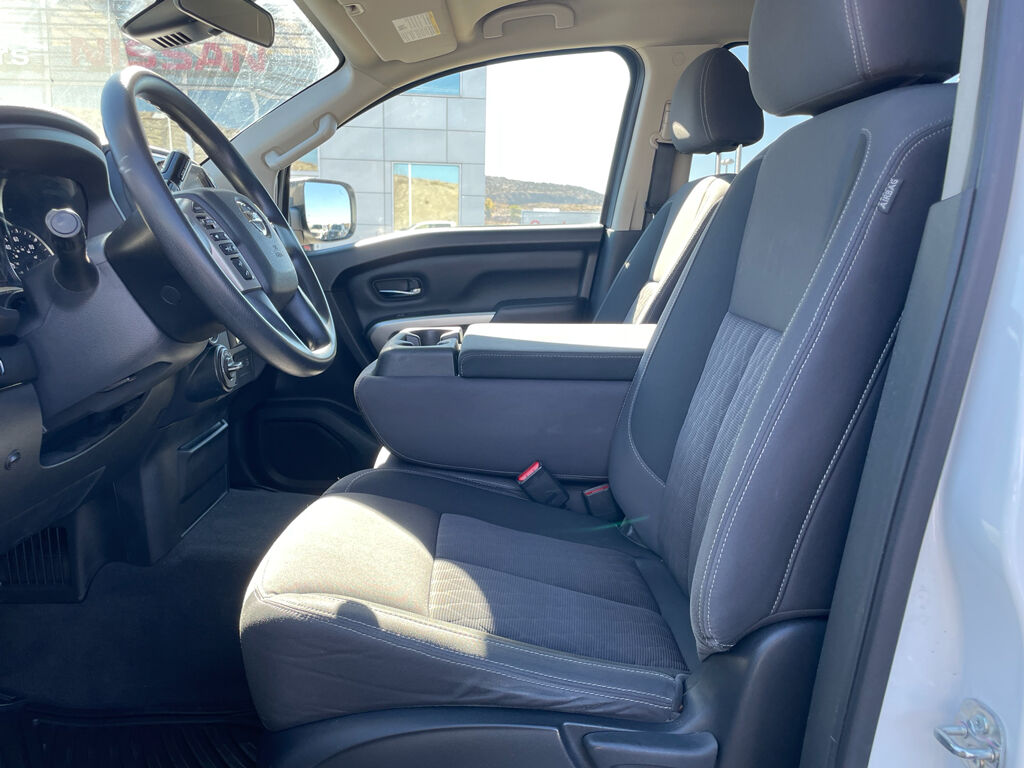 See what's behind you with the back up camera on this 2022 Nissan Titan . It comes equipped with Android Auto for seamless smartphone integration on the road. The Nissan Titan's Lane Departure Warning helps keep you in your lane. The rear parking assist technology on the vehicle will put you at ease when reversing. The system alerts you as you get closer to an obstruction. Bluetooth technology is built into this 2022 Nissan Titan , keeping your hands on the steering wheel and your focus on the road. Apple CarPlay: Seamless smartphone integration for this 1/2 ton pickup - stay connected and entertained on the go! This vehicle has four wheel drive capabilities. This 1/2 ton pickup embodies class and sophistication with its refined white exterior. It has a V8, 5.6L high output engine. The Electronic Stability Control will keep you on your intended path. This 1/2 ton pickup has an automatic transmission.