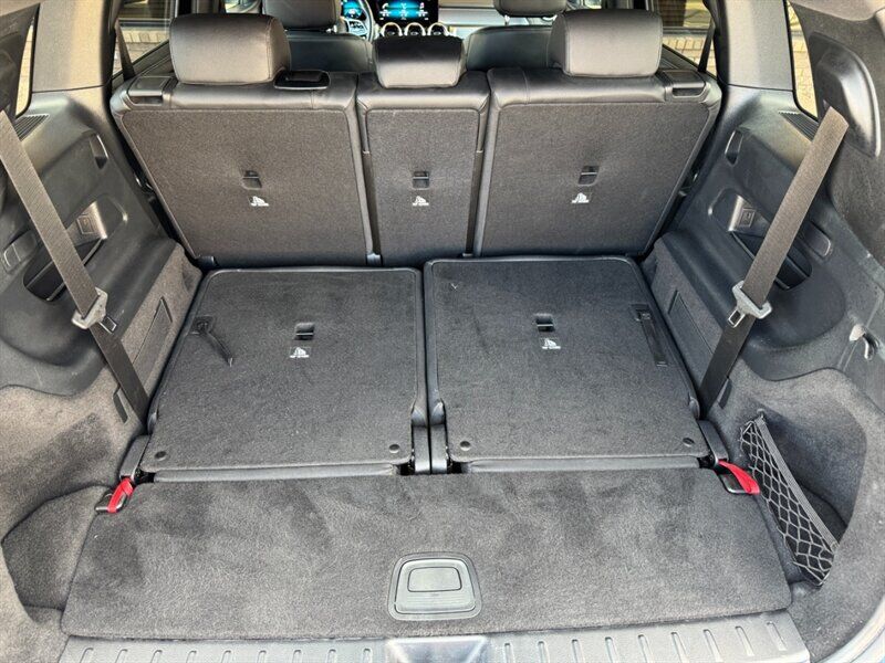 INSTALLED FEATURES: Air filtration: active charcoal, Front air conditioning: automatic climate control, Front air conditioning zones: dual, Rear vents: second row, Airbag deactivation: occupant sensing passenger, Front airbags: dual, Knee airbags: driver, Side airbags: front, Side curtain airbags: front / rear, Antenna type: element, Auxiliary audio input: Bluetooth / iPod/iPhone / memory card slot / USB, Radio: AM/FM / HD radio / touch screen display / voice operated, Radio data system, Speed sensitive volume control, Total speakers: 8, ABS: 4-wheel, Brake drying, Braking assist, Cornering brake control, Electronic brakeforce distribution, Electronic parking brake: auto off, Emergency braking preparation, Front brake type: ventilated disc, Power brakes, Rear brake type: disc, Armrests: rear center folding with pass-thru / rear center with cupholders, Dash trim: aluminum, Door trim: aluminum, Floor mat material: carpet, Floor material: carpet, Floor mats: front / rear, Interior accents: aluminum, Steering wheel trim: leather, Ambient lighting, Assist handle: front / rear, Cargo area light, Cargo cover: retractable, Center console: front console with armrest and storage, Cruise control, Cupholders: front / illuminated / rear, Easy entry: power driver seat, Footwell lights, Memorized settings: 3 driver / driver seat / liftgate / passenger seat / side mirrors, Multi-function remote: keyless entry / panic alarm / trunk release, One-touch windows: 4, Overhead console: front, Power outlet(s): 12V cargo area / 12V front / 12V rear / USB-C front / USB-C rear, Power steering: variable/speed-proportional, Power windows: lockout button, Push-button start, Reading lights: front / rear, Rearview mirror: manual day/night, Steering wheel: tilt and telescopic, Steering wheel mounted controls: audio / cruise control / multi-function / paddle shifter / phone / voice control, Storage: cargo net / cargo tie-down anchors and hooks / door pockets / front seatback / in floor / sunglasses holder, Touch-sensitive controls, Vanity mirrors: dual illuminating, Door handle color: body-color, Exhaust: dual tip / integrated, Exhaust tip color: chrome, Fender lip moldings: black, Front bumper color: body-color, Grille color: black with chrome accents, Mirror color: body-color, Rear bumper color: body-color, Rear spoiler: roofline, Rear spoiler color: body-color, Rear trunk/liftgate: liftgate / power operated, Rocker panel color: black / chrome accents, Window trim: chrome, Connected in-car apps: Google POIs / Google search, Infotainment: MBUX, Infotainment screen size: 7 in., Smartphone integration: Android Auto / Apple CarPlay, Clock, Compass, Digital odometer, External temperature display, Fuel economy display: MPG / range, Gauge: tachometer, Instrument cluster screen size: 7 in., Multi-function display, Trip odometer, Warnings and reminders: coolant temperature warning / lamp failure / low fuel level / low oil pressure / maintenance due, Daytime running lights: LED, Exterior entry lights: approach lamps, Front fog lights: LED, Headlights: auto delay off / auto on/off / LED / wiper activated, Rear fog lights, Taillights: LED, Side mirror adjustments: manual folding / power / reverse gear tilt, Side mirrors: heated / integrated turn signals, 4WD type: full time, Auto start/stop, Battery: maintenance-free, Drive mode selector, Roof rails: aluminum, Automatic emergency braking: front / front pedestrian, Blind spot safety: sensor/alert, Camera system: rear multi-view, Child safety door locks, Child seat anchors: LATCH system, Crumple zones: front / rear, Driver attention alert system, Impact sensor: battery disconnect / door unlock / fuel cut-off / post-collision safety system, Pre-collision warning system: audible warning / pedestrian detection / visual warning, Rearview monitor: in dash, Vehicle exit safety system, Emergency locking retractors: front / rear, Front seatbelts: 3-point, Rear seatbelts: 3-point, Seatbelt force limiters: front / rear, Seatbelt pretensioners: front / rear, Seatbelt warning sensor: front, Driver seat power adjustments: 12 / 4-way power lumbar / height / reclining, Front headrests: 2 / adjustable, Front seat type: bucket, Passenger seat power adjustments: 12 / 4-way power lumbar / height / reclining, Rear headrests: 3 / adjustable, Rear seat: sliding, Rear seat folding: flat / split, Rear seat manual adjustments: reclining, Rear seat type: 40-20-40 split bench, Upholstery: leatherette, Anti-theft system: alarm / vehicle immobilizer, Power door locks: auto-locking, Crosswind stabilization, Hill holder control, Off-road driving assist: hill descent, Stability control, Traction control, Front shock type: twin-tube gas, Front spring type: coil, Front stabilizer bar, Front struts: MacPherson, Front suspension classification: independent, Front suspension type: lower control arms, Rear shock type: gas, Rear spring type: coil, Rear stabilizer bar, Rear suspension classification: independent, Rear suspension type: multi-link, Driver assistance app: roadside assistance, Electronic messaging assistance: voice operated / with read function, Hands-free phone call integration: voice operated, Smart device app compatibility: Mercedes me, Smart device app function: engine start / horn/light operation / lock operation / maintenance status / vehicle location, Wi-Fi: hotspot compatible, Wireless data link: Bluetooth, Run flat tires, Tire Pressure Monitoring System, Wheel spokes: 5, Wheels: aluminum alloy, Front wipers: rain sensing / speed sensitive / variable intermittent, Liftgate window: fixed, Power windows: safety reverse, Rear privacy glass, Rear wiper: auto-on in reverse / intermittent / with washer, Window defogger: rear, SiriusXM Satellite Radio, Inductive Wireless Charging and NFC Pairing, Body-Color Roof Spoiler, Cosmos Black Metallic Paint, Power Liftgate Credit, Exterior Lighting Package, Parking Assist Package, Panorama Sunroof, 3rd Row Seating, Black Leather Interior, 19 in. 10-Spoke Wheels w/ Ma