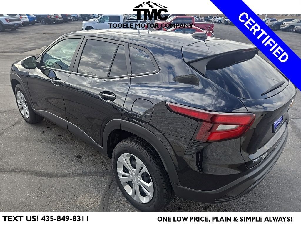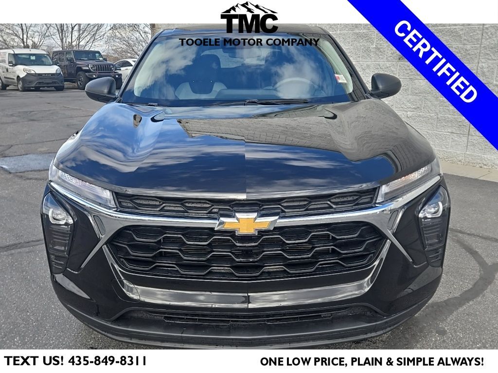 Certified. CARFAX One-Owner. 2025 Chevrolet Trax LS Lane Keep Assist w Lane Departure Warning Priced below KBB Fair Purchase Price! Chevrolet Certified Pre-Owned Certified, Electronic Stability Control, Preferred Equipment Group 1LS, Premium audio system: Chevrolet Infotainment 3, SiriusXM Trial Subscription, Steering wheel mounted audio controls, 2-Way Adjustable Front Head Restraints, 3.50 Final Drive Axle Ratio, 4 Speakers, 4-Speaker Audio System Feature, 4-Way Manual Front Passenger Seat Adjuster, 4-Wheel Disc Brakes, 6-Way Manual Driver Seat Adjuster, ABS brakes, Air Conditioning, AM/FM radio: SiriusXM, Auto High-beam Headlights, Brake assist, Bumpers: body-color, Cloth Seat Trim, Compass, Delay-off headlights, Driver door bin, Driver vanity mirror, Dual front impact airbags, Dual front side impact airbags, Emergency communication system: OnStar One Essentials, Exterior Parking Camera Rear, Front anti-roll bar, Front Bucket Seats, Front Center Armrest, Front reading lights, Front wheel independent suspension, Fully automatic headlights, Illuminated entry, License Plate Front Mounting Package, Low tire pressure warning, Occupant sensing airbag, Outside temperature display, Overhead airbag, Overhead console, Panic alarm, Passenger door bin, Passenger vanity mirror, Power door mirrors, Power steering, Power windows, Radio data system, Rear window defroster, Rear window wiper, Remote keyless entry, Security system, Speed control, Split folding rear seat, Spoiler, Tachometer, Telescoping steering wheel, Tilt steering wheel, Traction control, Trip computer, Variably intermittent wipers, Electronic Stability Control, Preferred Equipment Group 1LS, Premium audio system: Chevrolet Infotainment 3, SiriusXM Trial Subscription, Steering wheel mounted audio controls. 28/32 City/Highway MPG