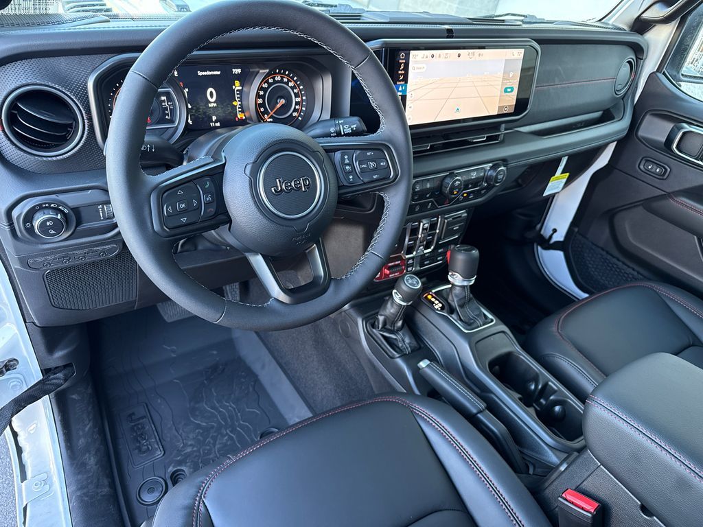12.3'' Touchscreen Display, 4-Wheel Disc Brakes, 4.10 Rear Axle Ratio, 4G LTE Wi-Fi Hot Spot, 8 Speakers, 97 MPH Vehicle Max Speed Calibration, ABS brakes, Air Conditioning, Alexa Built-In, Alloy wheels, Alpine Premium Audio System, AM/FM radio: SiriusXM, Apple CarPlay, Apple CarPlay/Android Auto, Auto High Beam Headlamp Control, Auto-Dimming Rear-View Mirror, Automatic temperature control, Blind Spot & Cross Path Detection, Bluetooth Wireless Speaker, Body Color 3-Piece Hard Top, Body Color Rubicon Highline Flare, Brake assist, Cloth Low-Back Bucket Seats, Compass, Connected Travel & Traffic Services, Connectivity - US/Canada, Delay-off headlights, Driver door bin, Driver vanity mirror, Dual front impact airbags, Dual front side impact airbags, Electronic Stability Control, Emergency communication system: Jeep Connect, Freedom Panel Storage Bag, Front anti-roll bar, Front Bucket Seats, Front Center Armrest w/Storage, Front dual zone A/C, Front fog lights, Front License Plate Bracket, Front reading lights, Full Length Floor Console Premium Armrest, Fully automatic headlights, Google Android Auto, GPS Navigation, Heated door mirrors, Heated Front Seats, Heated Steering Wheel, Illuminated entry, Integrated Off-Road Camera, Integrated roll-over protection, Integrated Voice Command w/Bluetooth, Leather Wrapped Park Brake Handle, Leather Wrapped Shift Knob, Low tire pressure warning, MOPAR All-Weather Slush Mats, MOPAR Hardtop Headliner, MOPAR Spray In Bedliner, Occupant sensing airbag, Outside temperature display, Overhead airbag, Panic alarm, ParkSense Rear Park Assist System, Passenger door bin, Passenger vanity mirror, Performance Suspension, Power 4-Way Driver Lumbar Adjust, Power 4-Way Passenger Lumbar Adjust, Power Adjust 8-Way Driver Seat, Power Adjust 8-Way Front Passenger Seat, Power Adjust Nappa Leather Seats, Power door mirrors, Power steering, Power windows, Premium Door Trim Panel, Quick Order Package 24Y Rubicon X, Radio data system, Radio: Uconnect 5 Nav w/12.3'' Display, Radio: Uconnect 5 w/12.3'' Display, Rear anti-roll bar, Rear Armrest w/Cupholder Seat, Rear reading lights, Rear Sliding Window, Rear Window Defroster, Remote keyless entry, Security system, SiriusXM Radio Service, SiriusXM w/360L, Speed control, Split folding rear seat, Steel Front Bumper, Steering wheel mounted audio controls, Tachometer, Telescoping steering wheel, Tilt steering wheel, Traction control, Trip computer, Universal Garage Door Opener, USB Host Flip, Variably intermittent wipers, Voltmeter, Wheels: 17'' x 7.5'' Machined/Painted Black. Price includes: $5500 - 2025 National Retail Bonus Cash . Exp. 04/30/2026