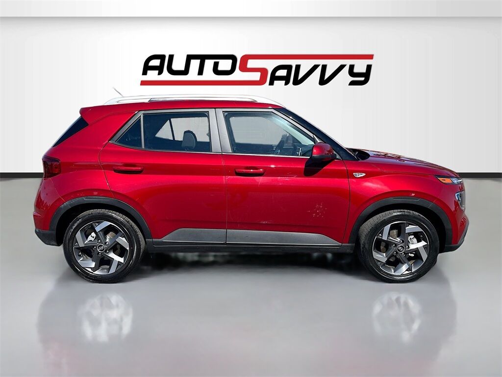 Explore the 2025 Hyundai Venue SEL at AutoSavvy Las Vegas, a compact utility vehicle that perfectly blends style, efficiency, and modern technology. With only 2,418 miles, this Ultimate Red beauty promises a near-new driving experience. Under the hood, you'll find a Smartstream 1.6L I-4 engine delivering 121 horsepower, paired with a smooth CVT transmission, offering an impressive 32 MPG on the highway. The Venue SEL comes equipped with a host of standard features including Apple CarPlay and Android Auto for seamless connectivity, a sunroof for an open-air feel, and 17-inch alloy wheels for a sporty look. Safety is paramount with features such as Blind Spot Collision Warning, Lane Keep Assist, and Forward Collision-Avoidance Assist. This vehicle is Savvy Certified, assuring you of its quality and reliability. At AutoSavvy Las Vegas, we prioritize transparency and quality, ensuring each vehicle undergoes a comprehensive inspection for safety and performance. Enjoy peace of mind with our 4-month/4,500-mile warranty, included with your purchase. Visit AutoSavvy Las Vegas today to experience the perfect blend of style, technology, and efficiency with the 2025 Hyundai Venue SEL.