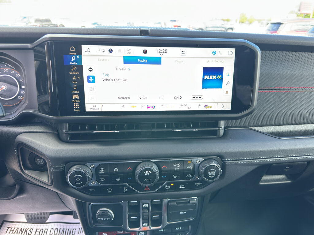 Convenience Group: Universal Garage Door Opener; Heated Front Seats; Heated Steering Wheel. Safety Group: Auto High Beam Headlamp Control; Blind Spot and Cross Path Detection; ParkSense Rear Park Assist System. Technology Group: Google Android Auto; SiriusXM Radio Service; 12.3" Touchscreen Display; Integrated Off-Road Camera; HD Radio; Rear View Auto Dim Mirror; Integrated Voice Command with Bluetooth; Connectivity - US/Canada; Uconnect 5 Navigation with 12.3" Display; GPS Navigation; 4G LTE Wi-Fi Hot Spot; SiriusXM with 360L; Connected Travel and Traffic Services; Apple CarPlay. Xtreme 35" Tire Package: LT315/70R17C 113/110S Tires; Wheel Flare Extensions; 97 MPH Vehicle Max Speed Calibration; MOPAR Tire Relocation Kit; Anti-Lock 4-Wheel Disc Perf Brakes; 35" Tire Suspension; MOPAR Hinge-Gate Reinforcement; MOPAR Jack Spacer; 17" X 8" Machined Wheels with Black Pockets; 4.56 Rear Axle Ratio; 6. 250 lbs GVWR. Quick Order Package 22R Rubicon. Steel Bumper Group: Steel Front Bumper; Steel Rear Bumper. Nappa Leather Seats. Warn Winch. Black 3-Piece Hard Top. Alpine Premium Audio System. MOPAR Hinge-Gate Reinforcement. MOPAR Hardtop Headliner. MOPAR All-Weather Floor Mats. Equipment listed is based on original vehicle build and subject to change. Please confirm the accuracy of the included equipment by calling the dealer prior to purchase.