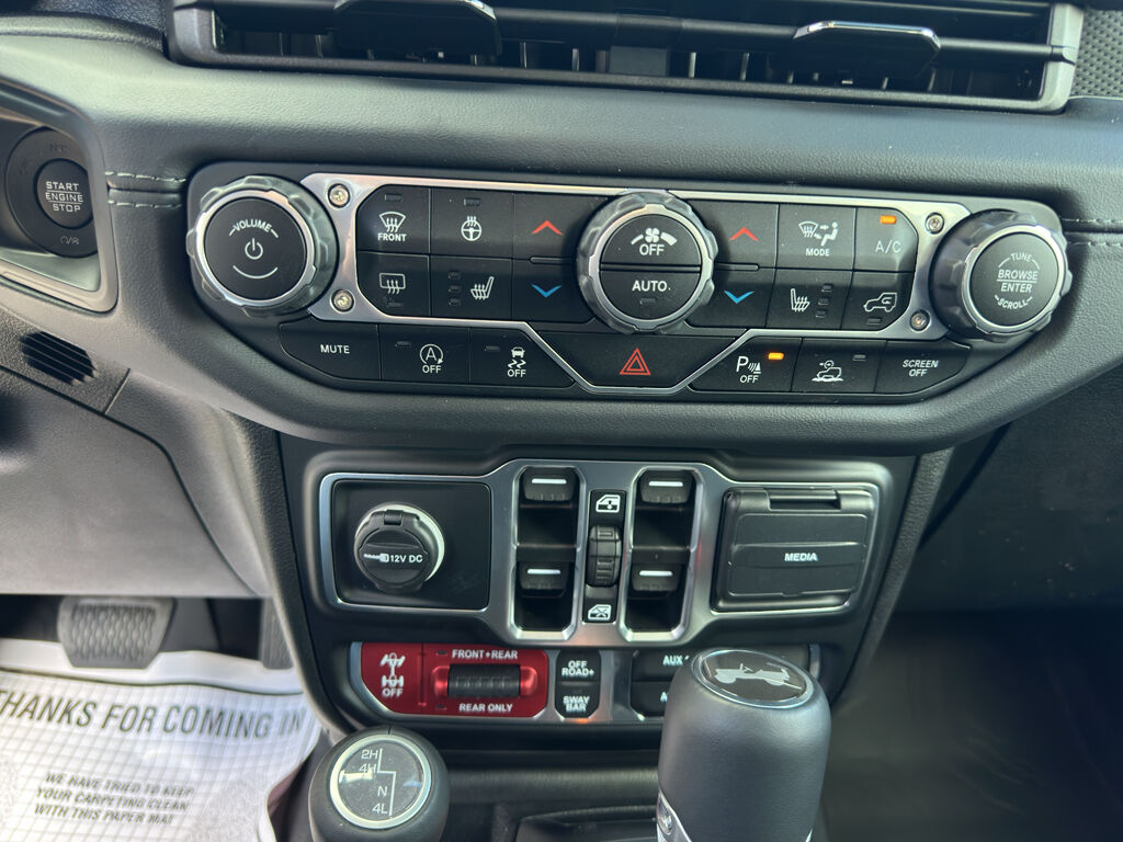 Convenience Group: Universal Garage Door Opener; Heated Front Seats; Heated Steering Wheel,Safety Group: Auto High Beam Headlamp Control; Blind Spot and Cross Path Detection; ParkSense Rear Park Assist System,Technology Group: Google Android Auto; SiriusXM Radio Service; 12.3" Touchscreen Display; Integrated Off-Road Camera; HD Radio; Rear View Auto Dim Mirror; Integrated Voice Command with Bluetooth; Connectivity - US/Canada; Uconnect 5 Navigation with 12.3" Display; GPS Navigation; 4G LTE Wi-Fi Hot Spot; SiriusXM with 360L; Connected Travel and Traffic Services; Apple CarPlay,Xtreme 35" Tire Package: LT315/70R17C 113/110S Tires; Wheel Flare Extensions; 97 MPH Vehicle Max Speed Calibration; MOPAR Tire Relocation Kit; Anti-Lock 4-Wheel Disc Perf Brakes; 35" Tire Suspension; MOPAR Hinge-Gate Reinforcement; MOPAR Jack Spacer; 17" X 8" Machined Wheels with Black Pockets; 4.56 Rear Axle Ratio; 6,250 lbs GVWR,Quick Order Package 22R Rubicon,Steel Bumper Group: Steel Front Bumper; Steel Rear Bumper,Nappa Leather Seats,Warn Winch,Black 3-Piece Hard Top,Alpine Premium Audio System,MOPAR Hinge-Gate Reinforcement,MOPAR Hardtop Headliner,MOPAR All-Weather Floor Mats,Integrated navigation system with voice activation,Blind Spot Detection,Heated steering wheel,Uconnect w/Bluetooth handsfree wireless device connectivity,Apple CarPlay/Android Auto smart device wireless mirroring,7 USB ports,First-row targa composite sunroof with manual activation,Nappa leather front seat upholstery,Driver seat with 8-way directional controls,Front passenger seat with 8-way directional controls,12.3 inch primary display,Full Speed Forward Collision Warning Plus,4G LTE Wi-Fi Hot Spot mobile hotspot internet access,ParkView rear mounted camera,Adaptive Cruise Control w/Stop & Go,Advanced Brake Assist predictive brake assist system,Cruise control with steering wheel mounted controls,Manual convertible roof,Primary monitor touchscreen,Cross Path Detection collision warning,Driver seat power lumbar support,Driver seat power reclining, cushion tilt, fore/aft control and height adjustable control,Driver seat power reclining, lumbar support, cushion tilt, fore/aft control and height adjustable control,Rock-Trac part-time 4WD,2L I-4 gasoline direct injection, DOHC, intercooled turbo, premium unleaded, engine with 270HP,Smart key with hands-free access and push button start,Bluetooth wireless audio streaming,Front mounted camera with washer,Dual-zone front climate control,Voice-activated climate control,Selec-Speed Control off-road speed control,Auto high-beam headlights,Sentry Key immobilizer,Vehicle tracker,Alpine speakers,Connected Travel & Traffic Services real-time traffic,Jeep Connect vehicle integrated emergency SOS system,Trailer sway control,Uconnect external memory control,Configurable instrumentation gauges,Front bumper winch,Electronic stability control system with anti-roll,Selec-Speed Control hill descent control,Hill start assist,Removable sunroof,Leather rear seat upholstery,Flip-up rear windshield,Automatic climate control,Rear Seat Reminder rear seat check warning,ParkSense rear parking sensors