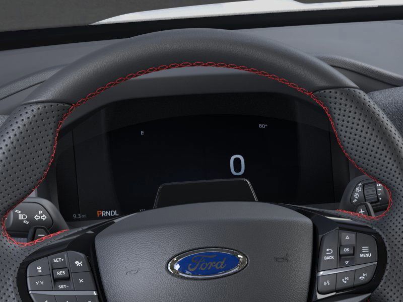 This 2025 Star White Metallic Tri-Coat Ford Explorer ST 4WD is well equipped and includes these features and benefits: Equipment Group 400A Standard Package, 4WD, 10 Speakers, 3.58 Non-Limited Slip Rear Axle, 3rd row seats: bench, 4-Wheel Disc Brakes, ABS brakes, Air Conditioning, Alloy wheels, AM/FM radio: SiriusXM with 360L, Apple CarPlay/Android Auto, Auto High-beam Headlights, Auto-dimming door mirrors, Auto-dimming Rear-View mirror, Automatic temperature control, Brake assist, Bumpers: body-color, Compass, Delay-off headlights, Driver door bin, Driver vanity mirror, Dual front impact airbags, Dual front side impact airbags, Electronic Stability Control, Emergency communication system: 911 Assist, Exterior Parking Camera Rear, Four wheel independent suspension, Front & 2nd Rows Floor Liners w/Carpet Floor Mats, Front anti-roll bar, Front Bucket Seats, Front Center Armrest, Front dual zone A/C, Front fog lights, Front License Plate Bracket, Front reading lights, Fully automatic headlights, Garage door transmitter, Heated door mirrors, Heated front seats, Heated rear seats, Heated steering wheel, Heated/Ventilated Miko Sport Captain's Chairs, Illuminated entry, Internet access capable: FordPass Connect 5G, Knee airbag, Leather steering wheel, Low tire pressure warning, Memory seat, Navigation System, Occupant sensing airbag, Outside temperature display, Overhead airbag, Overhead console, Panic alarm, Passenger door bin, Passenger vanity mirror, Power door mirrors, Power driver seat, Power Liftgate, Power passenger seat, Power steering, Power windows, Radio: B&O Sound System by Bang & Olufsen, Rain sensing wipers, Rear air conditioning, Rear anti-roll bar, Rear reading lights, Rear window defroster, Rear window wiper, Remote keyless entry, Security system, Speed control, Speed-sensing steering, Speed-Sensitive Wipers, Split folding rear seat, Spoiler, Sport steering wheel, Steering wheel mounted audio controls, Tachometer, Telescoping steering wheel, Tilt steering wheel, Traction control, Trip computer, Turn signal indicator mirrors, Variably intermittent wipers, Ventilated front seats, and Wheels: 21'' Magnetite-Painted Aluminum.