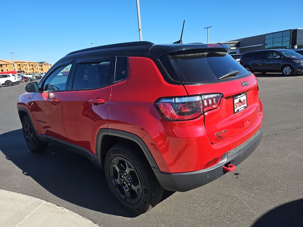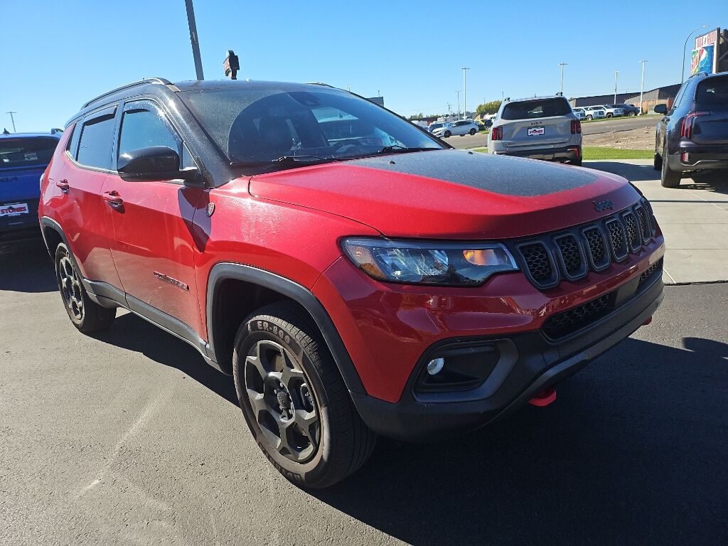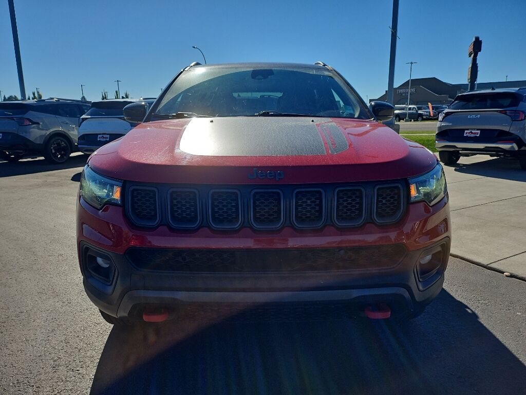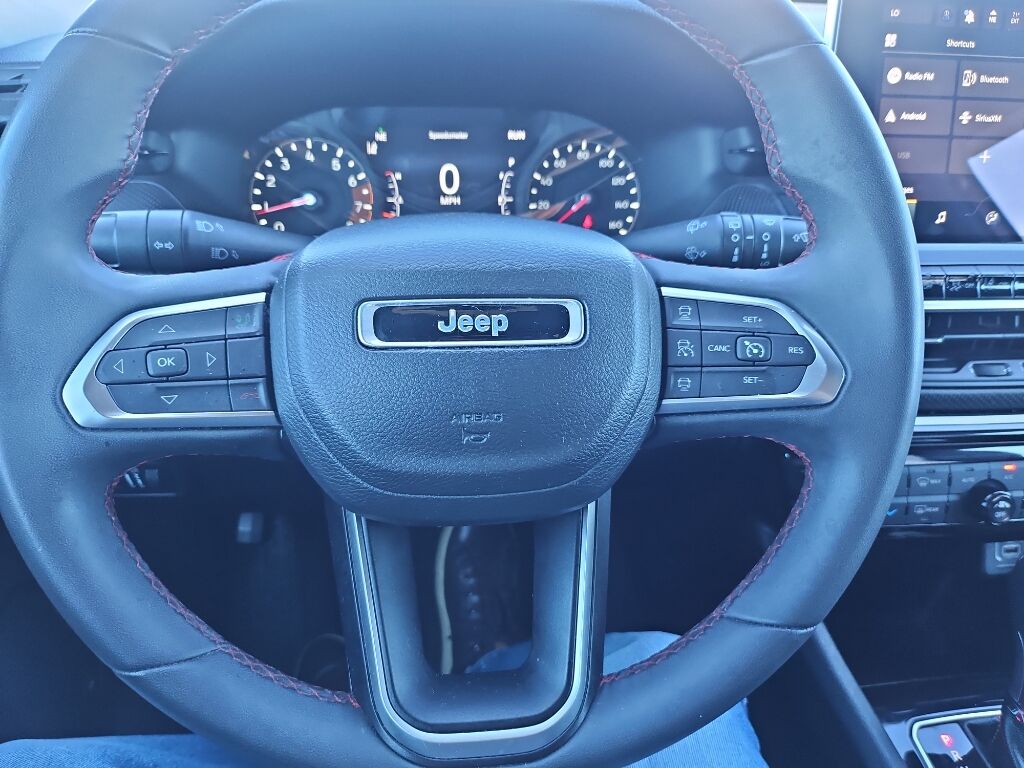 This 2023 Jeep Compass 's Forward Collision Warning system alerts the driver to potential front-end collisions, enhancing safety. The vehicle offers Android Auto for seamless smartphone integration. Apple CarPlay: Seamless smartphone integration for this mid-size suv - stay connected and entertained on the go! The leather seats in this 2023 Jeep Compass are a must for buyers looking for comfort, durability, and style. See what's behind you with the back up camera on the Jeep Compass. The vehicle keeps you comfortable with Auto Climate. This 2023 Jeep Compass features a hands-free Bluetooth phone system. This vehicle has automated speed control that adjusts to maintain a safe following distance, enhancing highway driving convenience. This 2023 Jeep Compass has a clean CARFAX vehicle history report. When you encounter slick or muddy roads, you can engage the four wheel drive on this mid-size suv and drive with confidence. This vehicle has a 4 Cyl, 2.0L high output engine.