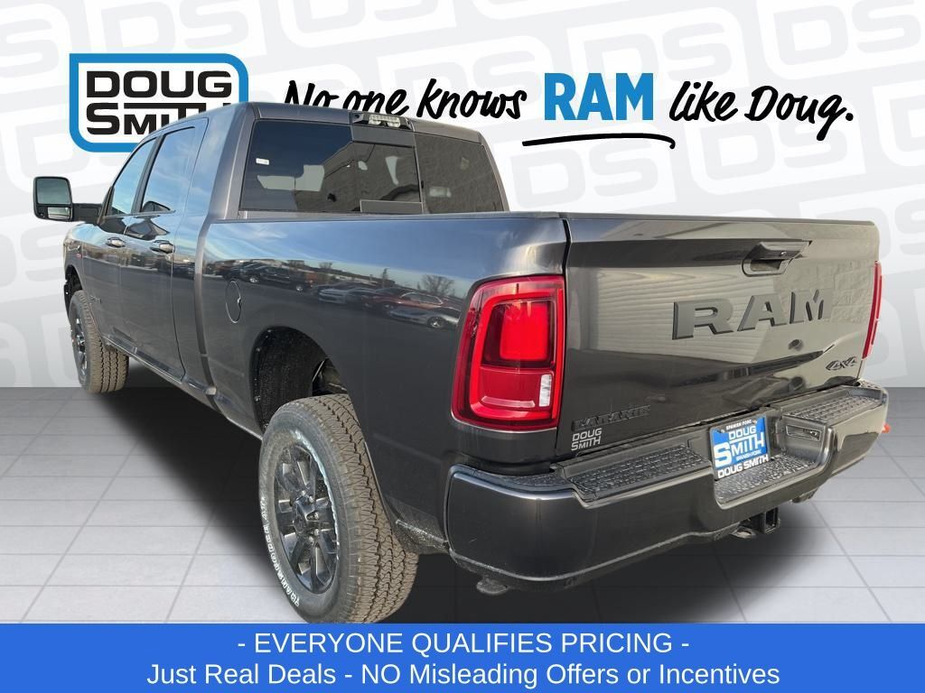 Granite Crystal Metallic Clearcoat 2026 Ram 2500 Laramie 4WD 8-Speed Automatic 6.7L I6 Price includes: $1000 - 2026 National Bonus Cash . Exp. 03/02/2026 - Advertised Price reflects a $1,500 Financing Discount. To qualify for this discount, customer must secure credit approval and finance with a dealership lender. Cash purchases or outside financing will void the discount, increasing the final price by $1,500. Exp. 02/28/2026 - See Doug Smith CDJR for full details. - Sale Price Includes: $1,500 Trade-In Allowance Incentive Program for customers that trade in a 2015 or newer passenger vehicle with 100,000 miles or less. - Offer Exp. 02/28/2026 - See Doug Smith CDJR for full details.