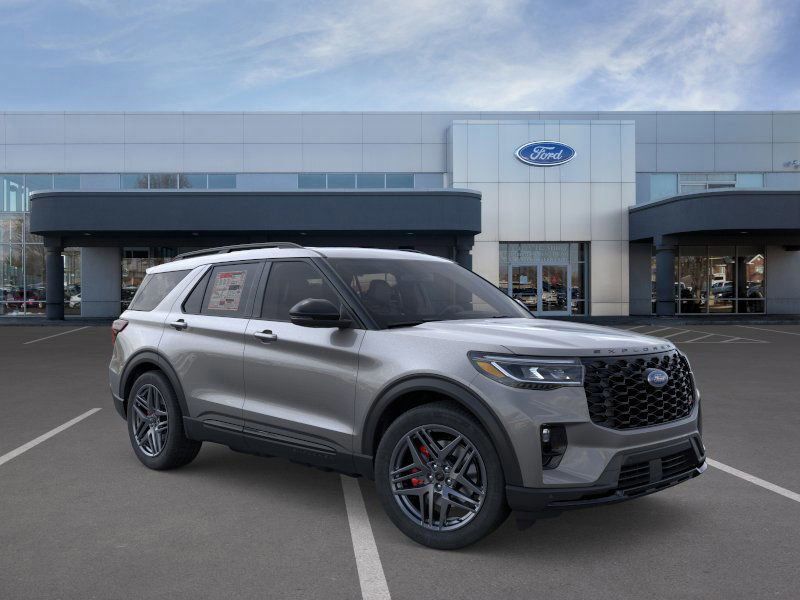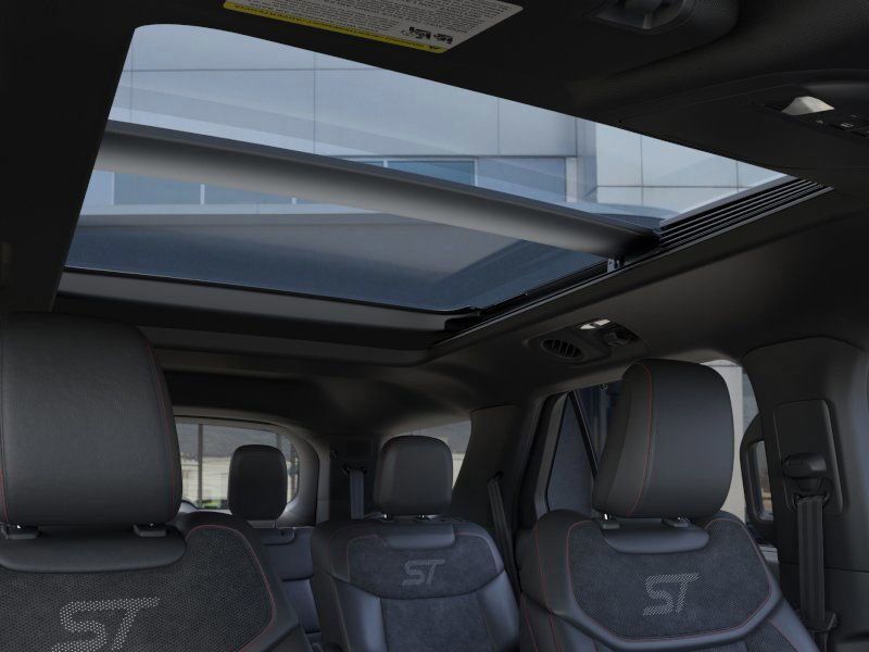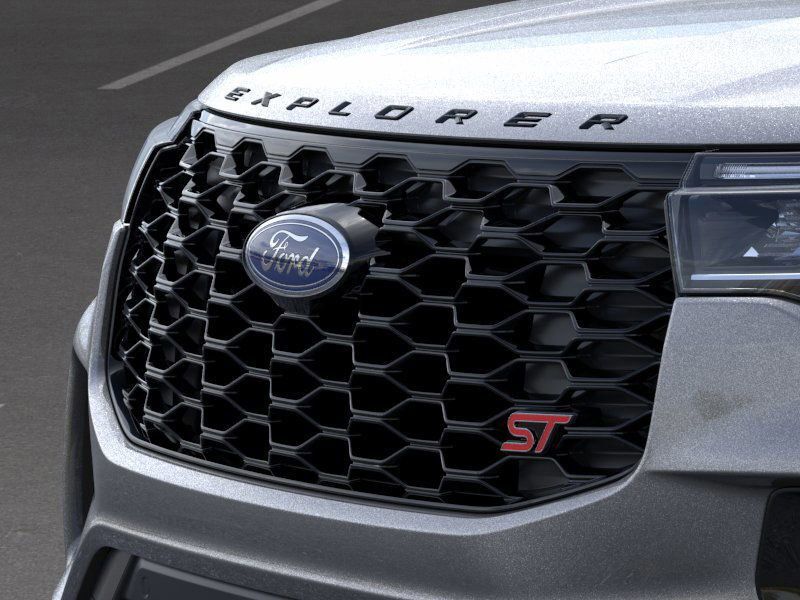 This 2025 Carbonized Gray Metallic Ford Explorer ST 4WD is well equipped and includes these features and benefits: Equipment Group 400A Standard Package, Sun and Sound Package (B&O Sound System by Bang & Olufsen, Multicontour Seats w/Front Active Motion, and Panoramic Vista Roof w/Power Shade), 4WD, 10 Speakers, 3.58 Non-Limited Slip Rear Axle, 3rd row seats: bench, 4-Wheel Disc Brakes, ABS brakes, Air Conditioning, Alloy wheels, AM/FM radio: SiriusXM with 360L, Apple CarPlay/Android Auto, Auto High-beam Headlights, Auto-dimming door mirrors, Auto-dimming Rear-View mirror, Automatic temperature control, Brake assist, Bumpers: body-color, Compass, Delay-off headlights, Driver door bin, Driver vanity mirror, Dual front impact airbags, Dual front side impact airbags, Electronic Stability Control, Emergency communication system: 911 Assist, Exterior Parking Camera Rear, Four wheel independent suspension, Front anti-roll bar, Front Bucket Seats, Front Center Armrest, Front dual zone A/C, Front fog lights, Front License Plate Bracket, Front reading lights, Fully automatic headlights, Garage door transmitter, Heated door mirrors, Heated front seats, Heated rear seats, Heated steering wheel, Heated/Ventilated Miko Sport Captain's Chairs, Illuminated entry, Internet access capable: FordPass Connect 5G, Knee airbag, Leather steering wheel, Low tire pressure warning, Memory seat, Navigation System, Occupant sensing airbag, Outside temperature display, Overhead airbag, Overhead console, Panic alarm, Passenger door bin, Passenger vanity mirror, Power door mirrors, Power driver seat, Power Liftgate, Power passenger seat, Power steering, Power windows, Radio: B&O Sound System by Bang & Olufsen, Rain sensing wipers, Rear air conditioning, Rear anti-roll bar, Rear reading lights, Rear window defroster, Rear window wiper, Remote keyless entry, Security system, Speed control, Speed-sensing steering, Speed-Sensitive Wipers, Split folding rear seat, Spoiler, Sport steering wheel, Steering wheel mounted audio controls, Tachometer, Telescoping steering wheel, Tilt steering wheel, Traction control, Trip computer, Turn signal indicator mirrors, Variably intermittent wipers, Ventilated front seats, and Wheels: 21'' Magnetite-Painted Aluminum.