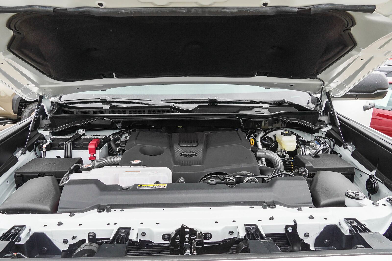 TRD 3' Suspension Lift Kit - The new Tundra TRD Lift Kit offers a 3' lift in the front and a 2' lift in the back, providing 2.6 of additional ground clearance overall. Increased suspension stroke to support lift and aid in off-road performance on-road stability Toyota Safety Sense 2.5 compliant Bilstein-Tuned Front Rear Shock Absorbers Forged Steel Upper Control Arms by Roush Eye-Catching TRD Red Front Coil Springs Selection of Lift Kit removes Fog Lights