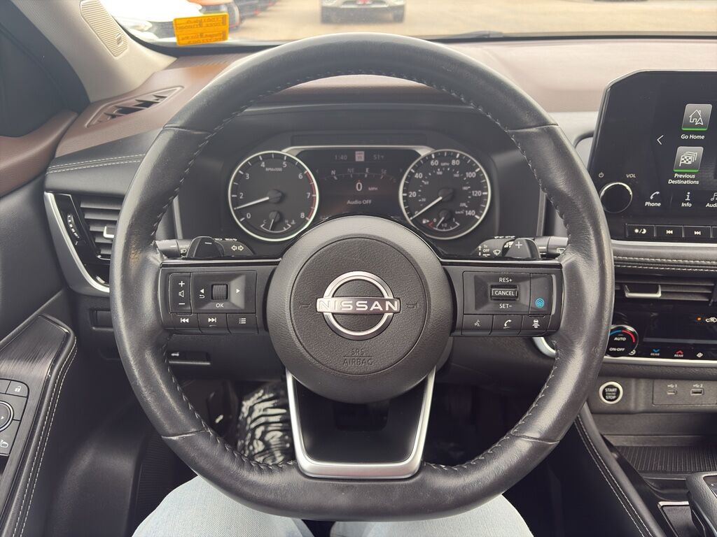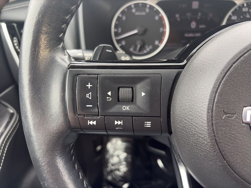 SL Premium Package: Bose Premium Audio System; Rear Door Sunshades; Nissan Door to Door Navigation; ProPILOT Assist with Navi-Link; SiriusXM Traffic; Front, Side and Rear Sonar,Floor Mats with 2-Piece Cargo Area Protector,Special Paint - Scarlet Ember Tintcoat,Black Splash Guards (set of 4),Chrome Rear Bumper Protector,Apple CarPlay/Android Auto smart device wireless mirroring,ProPILOT Assist hands-on cruise control,Intelligent Emergency Braking (IEB) forward collision mitigation,Intelligent Emergency Braking with Pedestrian Detection (P-IEB),ProPILOT Assist with Navi-link Automatic curve slowdown cruise control,NissanConnect mobile hotspot internet access,RearView Monitor rear mounted camera,Intelligent Lane Intervention (I-LI),Blind Spot Intervention (BSI) / Blind Spot Warning (BSW),Rear Intelligent Emergency Braking (R-IEB) collision mitigation,Intelligent Cruise Control (ICC) w/Full Speed Range and Hold,Predictive brake assist system,Cruise control with steering wheel mounted controls,Power liftgate rear cargo door,Integrated navigation system with voice activation,Keyfob remote start,Heated steering wheel,Heated driver and front passenger seats,Leather front seat upholstery,Primary monitor touchscreen,First and second-row sliding and tilting glass sunroof with express open/close activation sunshade,Driver seat power reclining, lumbar support, cushion tilt, fore/aft control and height adjustable control,Intelligent All-Wheel Drive automatic full-time AWD,VC-Turbo 1.5L I-3 gasoline direct injection, DOHC, CVTCS variable valve control, intercooled turbo, regular unleaded, engine with 201HP,Intelligent Driver Alertness (I-DA),Intelligent Key with hands-free access and push button start,Intelligent Around View Monitor (I-AVM) aerial view camera,Automatic brake hold,Bluetooth wireless audio streaming,Proximity cargo area access release,Front mounted camera,Right side camera,Left side camera,Traffic sign recognition with automatic speed limit assist,Dual-zone front climate control,Rear climate control system with separate controls,High Beam Assist (HBA) auto high-beam headlights,Immobilizer,NissanConnect Services vehicle tracker,Bose speakers,SiriusXM Traffic real-time traffic,NissanConnect Services vehicle integrated emergency SOS system,Bluetooth handsfree wireless device connectivity,Divide-N-Hide multi-level cargo floor,External memory control,Electronic stability control system,Hill Start Assist (HSA),Leather rear seat upholstery,Heated rear wiper park,Automatic climate control