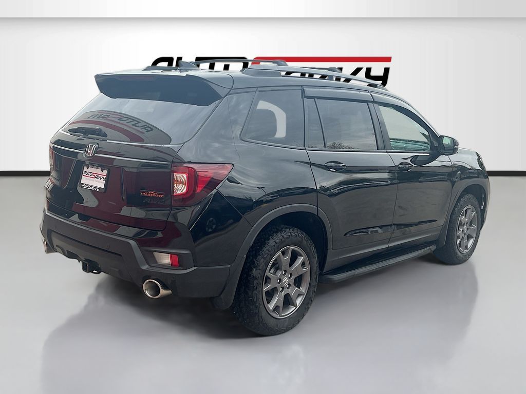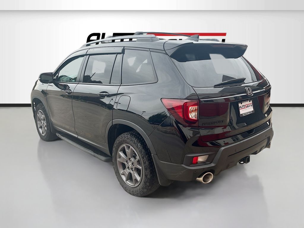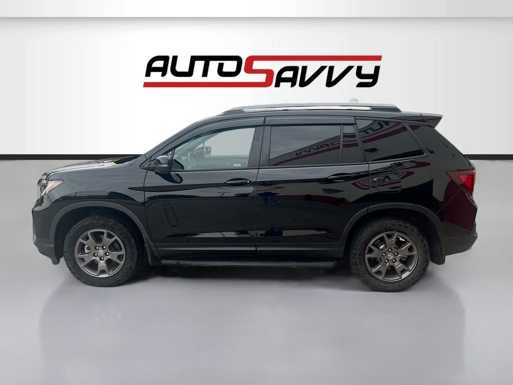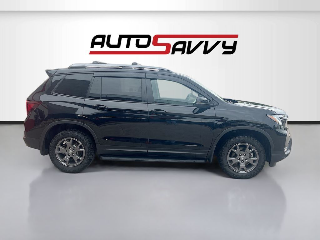 Explore the 2024 Honda Passport AWD TrailSport at AutoSavvy Windsor, a remarkable blend of rugged capability and modern luxury. With only 26,924 miles, this certified SUV is ready to elevate your adventures. Powered by a robust 3.5L V-6 engine with 280 horsepower, it offers a dynamic driving experience, enhanced by the smooth 9-speed automatic transmission. The striking Crystal Black Pearl exterior is paired with a sophisticated black leather interior, featuring heated front seats and dual-zone climate control for ultimate comfort. Stay connected with Apple CarPlay and Android Auto, while the integrated navigation system ensures you never lose your way. Advanced safety features like adaptive cruise control, blind spot monitor, and automatic emergency braking provide peace of mind on every journey. The current status of the title is branded, reflecting AutoSavvy Windsor's dedication to transparency and quality assurance. This Honda Passport has undergone a meticulous inspection to meet high safety and performance standards. As a Savvy Certified model, it includes the added benefit of a 4-month/4,500-mile warranty, offering extra confidence with your purchase. Visit AutoSavvy Windsor today to experience the perfect combination of power, technology, and style with the 2024 Honda Passport AWD TrailSport, and drive away with assurance.