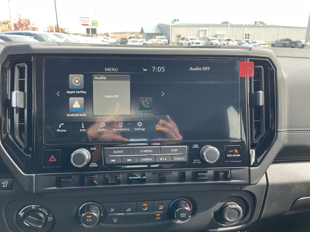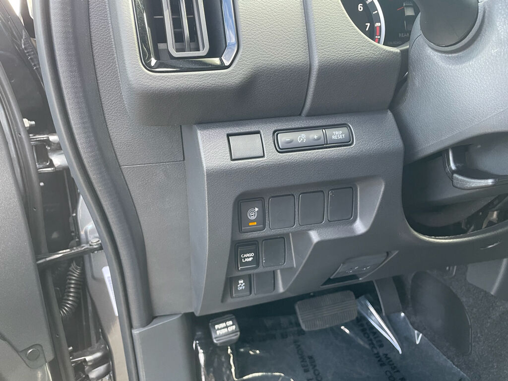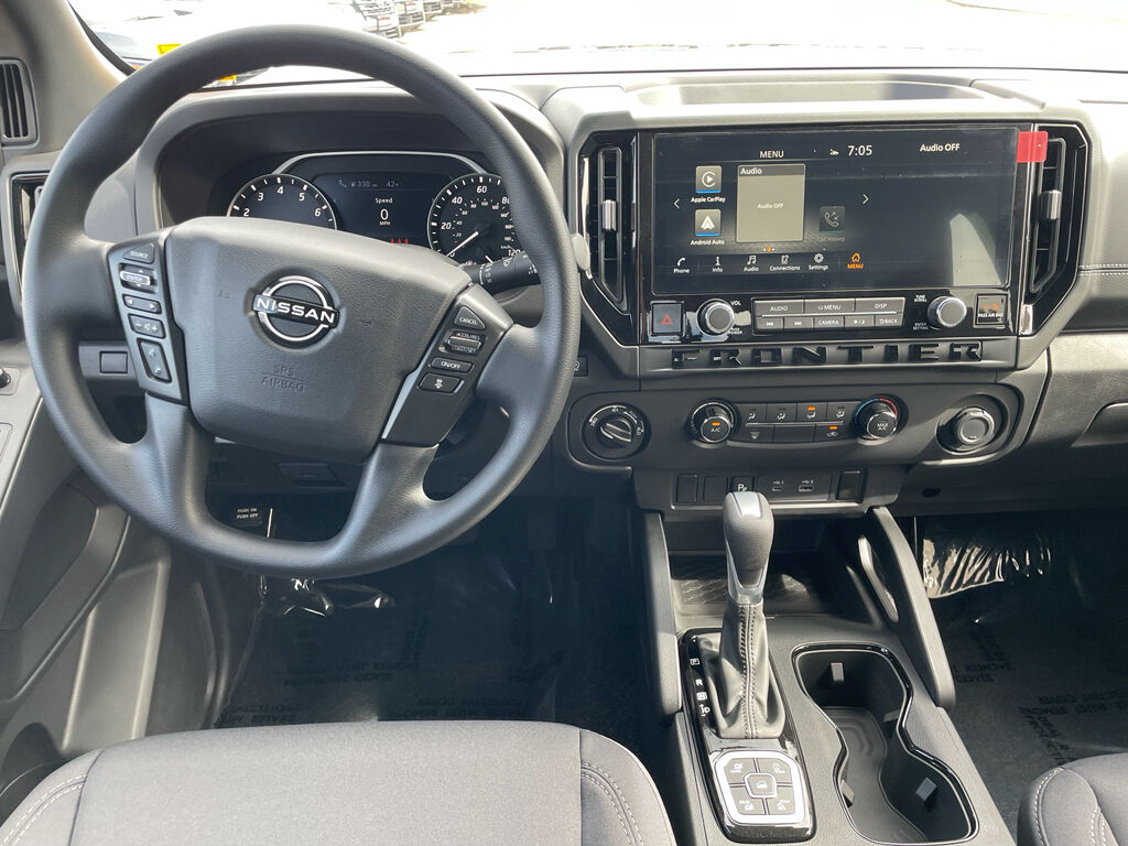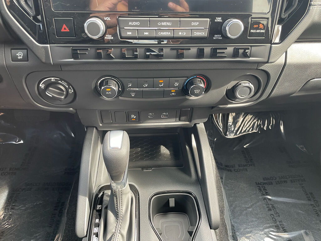 Dark Armor Package: Dark FRONTIER Tailgate Lettering; Dark Mirror Caps; 17" Dark Wheels; Dark Grille Surround/mesh/inner Fascia,Tow Package,Splash Guards,Carpeted Floor Mats,USB Charging Cable Kit,Door Scuff Protection,Wireless Apple CarPlay/Wireless Android Auto smart device wireless mirroring,Automatic Emergency Braking with Pedestrian Detection (P-AEB),Automatic Emergency Braking with Pedestrian Detection (P-AEB),Mobile hotspot internet access,RearView Monitor rear mounted camera,Rear Automatic Braking (RAB) collision mitigation,Intelligent Cruise Control (ICC),Brake assist system,Cruise control with steering wheel mounted controls,Primary monitor touchscreen,Lane Departure Warning (LDW),Driver seat power reclining, lumbar support, fore/aft control and height adjustable control,Part-time 4WD,VQ 3.8L V-6 gasoline direct injection, DOHC, VVEL variable valve control, regular unleaded, engine with 310HP,Intelligent Driver Alertness (I-DA),Bluetooth wireless audio streaming,Blind Spot Warning (BSW),Smart key with push button start,High Beam Assist (HBA) auto high-beam headlights,Immobilizer,Selectable Terrain Modes,Vehicle integrated emergency SOS system,Bluetooth handsfree wireless device connectivity,Trailer sway control,NissanConnect external memory control,Digital/analog instrumentation display,Configurable instrumentation gauges,Electronic stability control system,Hill descent control,Hill Start Assist (HSA),Sliding rear windshield,Rear Door Alert rear seat check warning,Rear Sonar System rear parking sensors,LED brake lights,Easy lift tailgate,Easy lower tailgate,Active grille shutters,Manual rear child safety door locks,Mobile app access,Gauge cluster display size: 7.00,Manual tilting steering wheel,Manual telescopic steering wheel,Auto stop-start engine,Metallic paint,17 x 7.5-inch front and 16 x 7.5-inch rear silver aluminum wheels,P265/65SR17 AS BSW front and rear tires,Premium cloth front seat upholstery,10 airbags,Driver front impact airbag,Seat mounted side impact driver airbag
