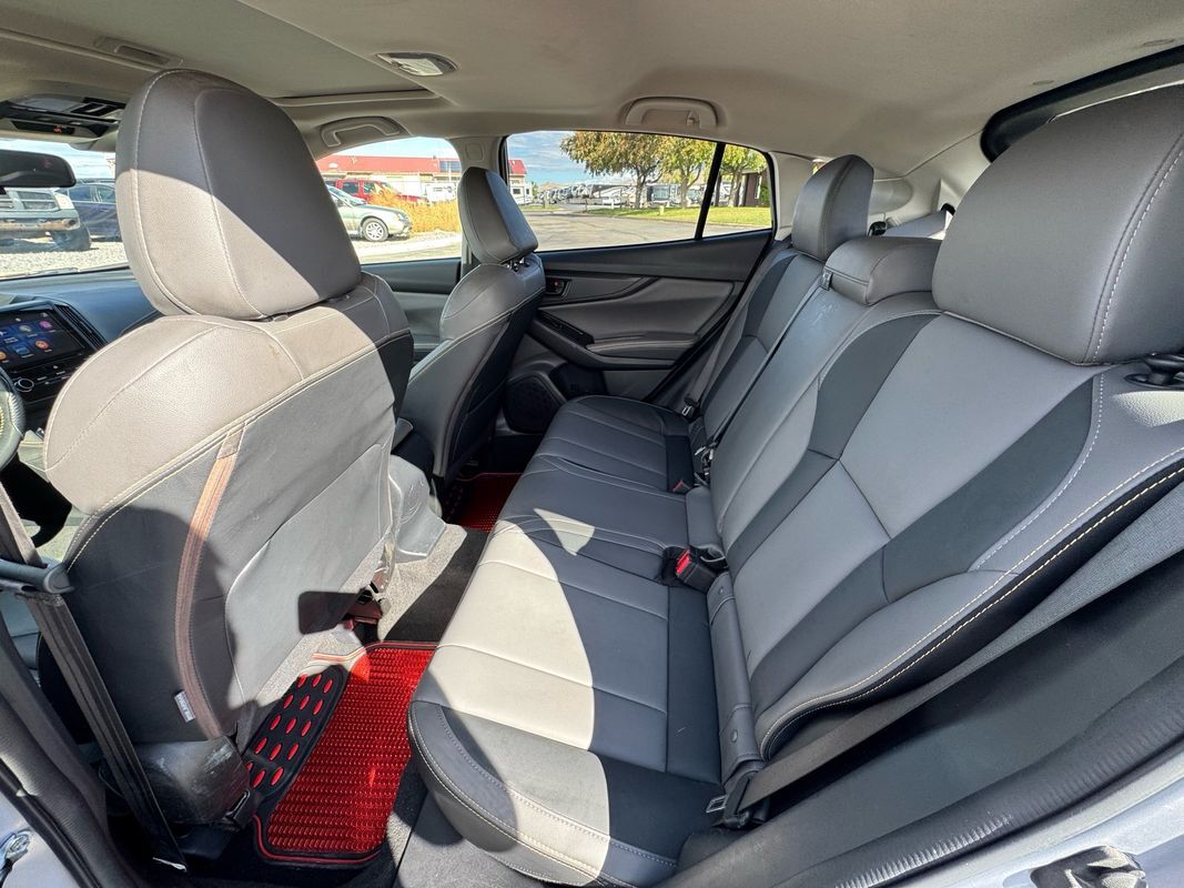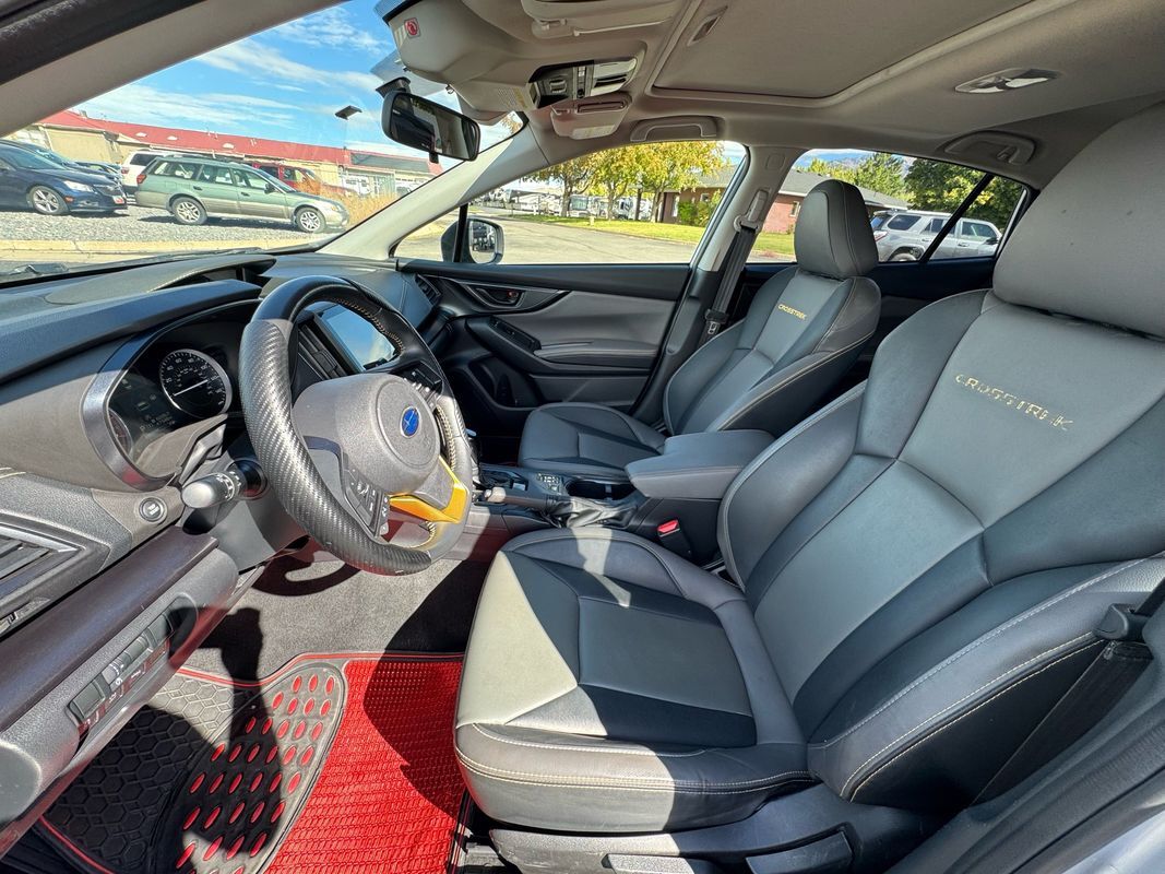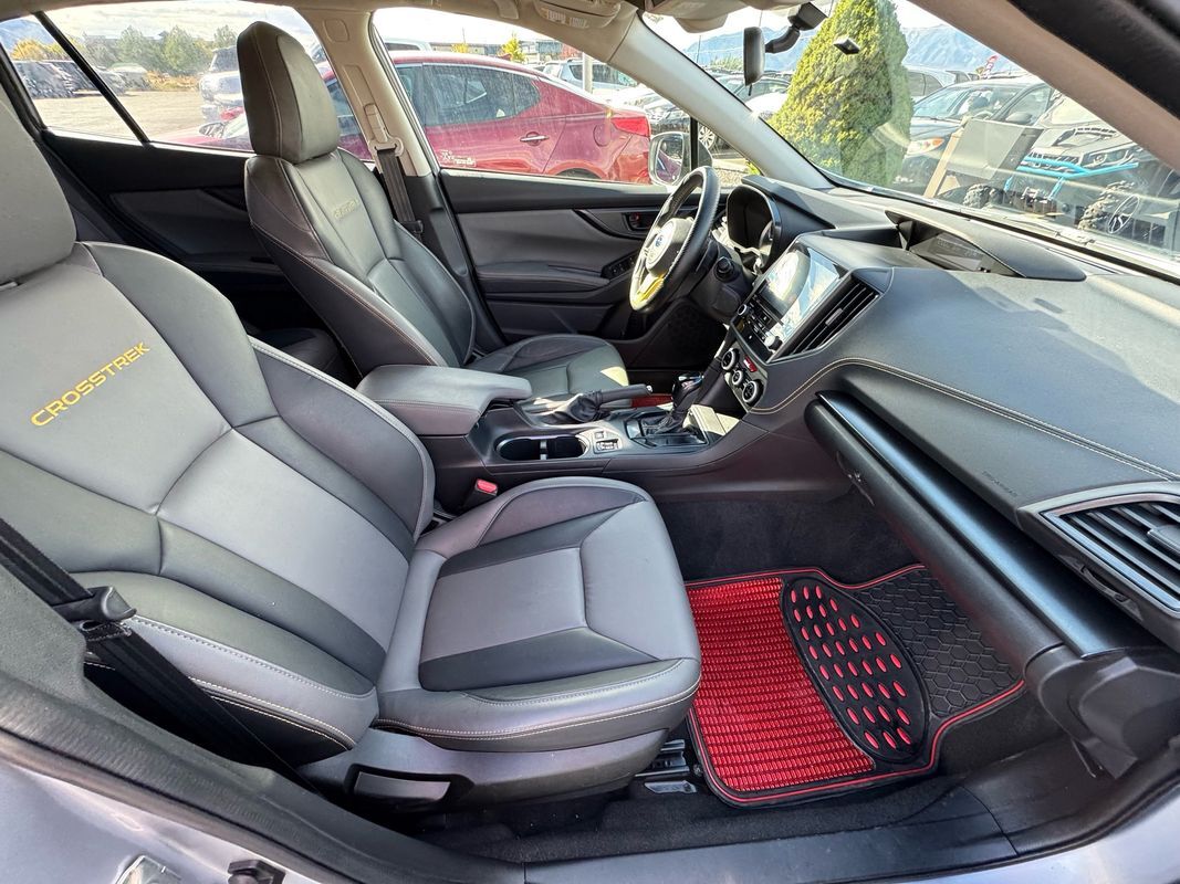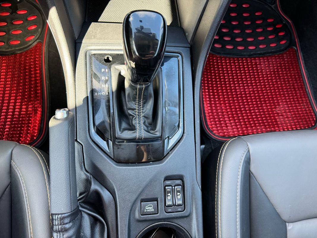 Sunroof/Moonroof,Leather Seats,Heated Seats,Bluetooth,Backup Camera,Roof rails: black,Driver seat: heated,Driver seat manual adjustments: height reclining, 6,Front headrests: adjustable 2,Front seat type: bucket,Passenger seat: heated,Passenger seat manual adjustments: reclining 4,Rear headrests: adjustable 3,Rear seat folding: split,Rear seat type: 60-40 split bench,Upholstery: vinyl,Upholstery accents: contrast stitching,ABS: 4-wheel,Braking assist: ,Cornering brake control: ,Electronic brakeforce distribution: ,Front brake diameter: 11.6,Front brake type: ventilated disc,Power brakes: ,Rear brake diameter: 10.8,Rear brake type: disc,Alternator: 130 amps,Auto start/stop: ,Battery: maintenance-free,Battery saver: ,Daytime running lights: ,Exterior entry lights: approach lamps,Front fog lights: ,Headlights: auto delay off auto on/off, halogen, wiper activated,Automatic emergency braking: front,Camera system: rearview,Check rear seat reminder: ,Child safety door locks: ,Child seat anchors: LATCH system,Crumple zones: front rear,Impact absorbing seats: dual front,Impact sensor: door unlock fuel cut-off,Lane deviation sensors: ,Lane keeping assist: ,Pre-collision warning system: audible warning visual warning,Rearview monitor: in dash,Safety brake pedal system: ,Airbag deactivation: occupant sensing passenger,Front airbags: dual,Knee airbags: driver,Side airbags: front,Side curtain airbags: front rear,Side mirror adjustments: manual folding power,Side mirrors: heated integrated turn signals,Front wipers: variable intermittent,Heated windshield wiper rests: ,Laminated glass: acoustic,Liftgate window: fixed,Power windows: safety reverse,Rear privacy glass: ,Rear wiper: auto-on in reverse intermittent, with washer,Window defogger: rear,Anti-theft system: alarm vehicle immobilizer,Power door locks: anti-lockout auto-locking,Steering ratio: 13.0,Turns lock-to-lock: 2.6,Emergency locking retractors: driver rear,Front seatbelts: 3-point,Rear seatbelts: 3-point,Seatbelt force limiters: front,Seatbelt pretensioners: front,Seatbelt warning sensor: front,4WD type: full time,Axle ratio: 3.70,Drive mode selector: ,Front shock type: gas,Front spring type: coil,Front stabilizer bar: ,Front struts: MacPherson,Front suspension classification: independent,Front suspension type: lower control arms,Rear shock type: gas,Rear spring type: coil,Rear stabilizer bar: diameter 16 mm,Rear suspension classification: independent,Rear suspension type: double wishbone,Driver assistance app: roadside assistance,Electronic messaging assistance: voice operated with read function,Phone: voice operated,Satellite communications: voice guided directions,Smart device app compatibility: MySubaru,Smart device app function: engine start horn/light operation, lock operation, maintenance scheduling, maintenance status, vehicle location,Wi-Fi: hotspot,Wireless data link: Bluetooth,Antenna type: diversity mast,Auxiliary audio input: Bluetooth USB, iPod/iPhone, jack,In-Dash CD: MP3 Playback single disc,Internet radio app: AHA Pandora, Stitcher, iHeartRadio,Radio: AM/FM HD radio, touch screen display, voice operated,Radio data system: ,Satellite radio: SiriusXM,Speed sensitive volume control: ,Total speakers: 6,Spare tire mount location: inside,Spare tire size: temporary,Spare wheel type: steel,Tire Pressure Monitoring System: ,Tire type: all season,Wheels: painted aluminum alloy,Clock: ,Digital odometer: ,External temperature display: ,Fuel economy display: MPG range,Gauge: tachometer,Instrument cluster screen size: 4.5 in.,Multi-function display: ,Trip odometer: ,Warnings and reminders: coolant temperature warning lamp failure, low fuel level, low oil pressure, low washer fluid, maintenance due,Air filtration: ,Front air conditioning: automatic climate control,Front air conditioning zones: dual,Cargo area floor mat: rubber/vinyl,Center console trim: leatherette,Dash trim: metallic simulated carbon fiber,Door trim: leatherette metallic, simulated carbon fiber,Floor mat material: carpet,Floor material: carpet,Floor mats: front rear,Interior accents: metallic-tone,Shift knob trim: leather,Steering wheel trim: leather,Door handle color: body-color,Exhaust tip color: stainless steel,Fender lip moldings: black,Front bumper color: body-color,Grille color: black,Headlight bezel color: black,Mirror color: black,Rear bumper color: body-color,Rear spoiler: roofline,Rear spoiler color: black,Rear trunk/liftgate: liftgate,Rocker panel color: black,Window trim: black,Adaptive cruise control: ,Adaptive stop and go cruise control: semi-automatic,Assist handle: front rear,Autonomous lane guidance: lane centering,Cargo area light: ,Cargo cover: retractable,Center console: front console with armrest and storage illuminated, organizer tray,Cupholders: front rear,Multi-function remote: panic alarm proximity entry system, trunk release,One-touch windows: 2,Overhead console: front,Power outlet(s): USB front two 12V front,Power steering: variable/speed-proportional,Power windows: lockout button,Push-button start: ,Reading lights: front rear,Rearview mirror: manual day/night,Steering wheel: tilt and telescopic,Steering wheel mounted controls: audio cruise control, multi-function, paddle shifter, phone, voice control,Storage: accessory hook cargo tie-down anchors and hooks, door pockets, front seatback, grocery bag holder,Vanity mirrors: dual illuminating,Connected in-car apps: Google POIs Google search, SiriusXM Travel Link, Yelp,Infotainment: STARLINK,Infotainment screen size: 6.5 in.,Smartphone integration: Android Auto Apple CarPlay,Hill holder control: ,Off-road driving assist: hill descent,Stability control: ,Traction control: