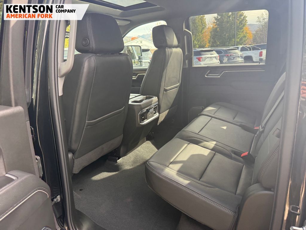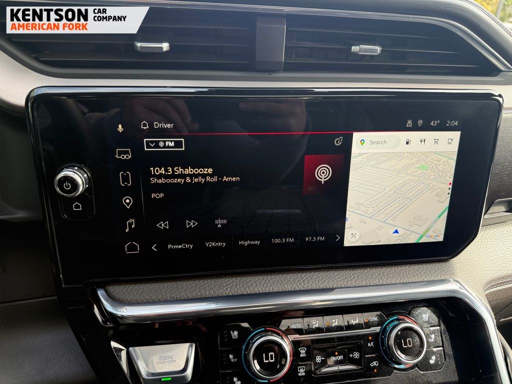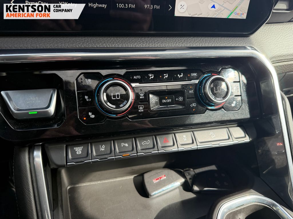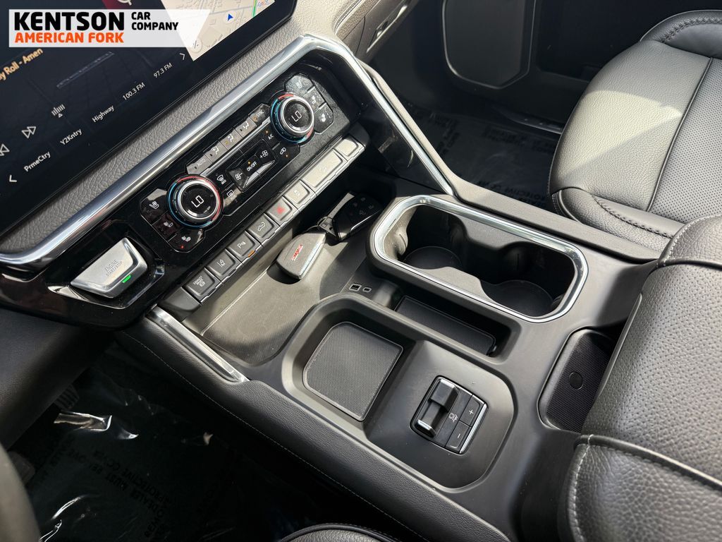 12-Way Power Driver Seat Adjuster w/Lumbar, 12-Way Power Passenger Seat Adjuster w/Lumbar, 120-Volt Bed Mounted Power Outlet, 120-Volt Instrument Panel Power Outlet, 2 Charge-Only Rear USB Ports, 2 Charge/Data USB Ports Inside Center Console, 2 USB Ports, 2-Speed Active Transfer Case, 3.73 Rear Axle Ratio, 4-Wheel Disc Brakes, 7 Speakers, ABS brakes, Air Conditioning, Alloy wheels, AM/FM radio: SiriusXM with 360L, Auto High-beam Headlights, Auto-dimming door mirrors, Auto-dimming Rear-View mirror, Automatic Emergency Braking, Automatic temperature control, Bed View Camera w/2 Trailer Camera Provisions, Bose Premium 7-Speaker Sound System, Brake assist, Buckle to Drive, Bumpers: body-color, Compass, Deep-Tinted Glass, Delay-off headlights, Driver door bin, Driver Memory, Driver vanity mirror, Dual front impact airbags, Dual front side impact airbags, Electric Rear-Window Defogger, Electronic Stability Control, Exterior Parking Camera Rear, Floor-Mounted Center Console, Following Distance Indicator, Forge Perforated Leather Seat Trim, Forward Collision Alert, Front anti-roll bar, Front Bucket Seats, Front Center Armrest, Front dual zone A/C, Front fog lights, Front Pedestrian Braking, Front Rain-Sensing Wipers, Front reading lights, Front wheel independent suspension, Fully automatic headlights, Garage door transmitter, Genuine wood dashboard insert, Genuine wood door panel insert, GMC Premium 13.4'' Diagonal Information Display, HD Surround Vision, Heated 2nd Row Outboard Seats, Heated door mirrors, Heated Driver & Front Outboard Passenger Seats, Heated front seats, Heated rear seats, Heated steering wheel, Heavy-Duty 80 Amp-Hr Battery, Hitch Guidance w/Hitch View, Illuminated entry, IntelliBeam Automatic High Beam On/Off, Keyless Open & Start, Lane Departure Warning System, LED Cargo Area Lighting, LED Smoked Amber Roof Marker Lamps, Low tire pressure warning, Manual Tilt-Wheel/Telescoping Steering Column, Memory seat, Occupant sensing airbag, Outside temperature display, Overhead airbag, Overhead console, Panic alarm, Passenger door bin, Passenger vanity mirror, Pickup Bed, Polished Exhaust Tip, Power door mirrors, Power driver seat, Power Front Windows w/Passenger Express Up/Down, Power passenger seat, Power Sliding Rear Window w/Defogger, Power steering, Power windows, Push Button Start, Radio: AM/FM w/Premium GMC Infotainment System, Rain sensing wipers, Rear Cross Traffic Alert, Rear reading lights, Rear seat center armrest, Rear step bumper, Rear window defroster, Remote keyless entry, Remote Vehicle Starter System, Safety Alert Seat, Security system, Signature Chrome Denali Grille, SiriusXM w/360L Trial Subscription, Speed control, Speed-sensing steering, Split folding rear seat, Spray-On Pickup Bedliner w/GMC Logo, Steering Wheel Audio Controls, Steering wheel mounted audio c