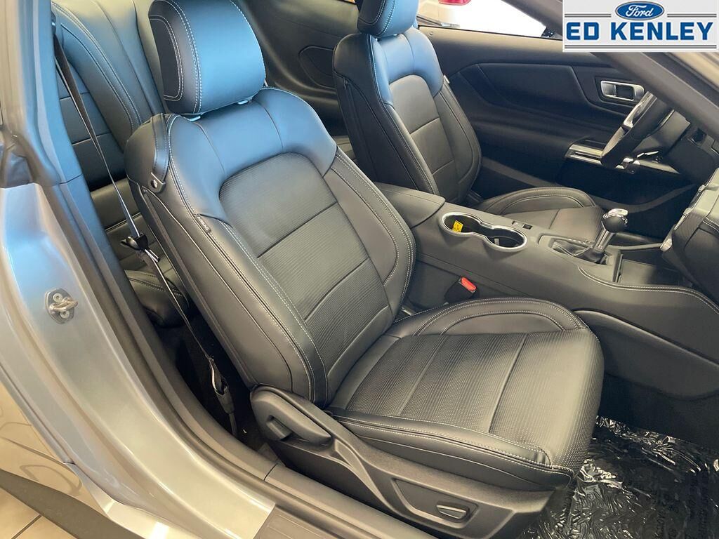 Equipment Group 401A High Package: Illuminated Door-Sill Scuff Plates; Leather-Trimmed Bucket Seats with Color Accents; 5.0L Ti-VCT V8 Engine; 19" X 8.5" Shadow Silver-Painted Aluminum; 19" Tires; AM/FM Stereo; Driver Seat and Mirrors Memory. Ford Co-Pilot360 Assist : Adaptive Cruise Control with Stop and Go; Connected Navigation; Pre-Collision Assist with Automatic Emergency Braking; Lane-Keeping System with Lane Keeping Aid. Mustang Nite Pony Package: Black Painted Wedge Decklid Spoiler; Black Mirror Caps; Black GT Pony Badges; Headlamps with Black Bezels. Security Package: Active Anti-Theft System; Locking Center Console; Wheel Locking Kit. Premier Trim with Color Accent Group: Instrument Panel with Accent Stitch. Brembo Brake System with Performance Linings. Active Valve Performance Exhaust. 3.55 Limited Slip Rear Axle. B&O Sound System by Bang & Olufsen with 12 Speakers. Red Painted Brake Calipers with White Logo. Premium Floor Liners Front and Rear (with Carpet Mats). Floor Mats. 1st Row. Black with City Silver GT Logo. Roadside Assistance Kit. Equipment listed is based on original vehicle build and subject to change. Please confirm the accuracy of the included equipment by calling the dealer prior to purchase.