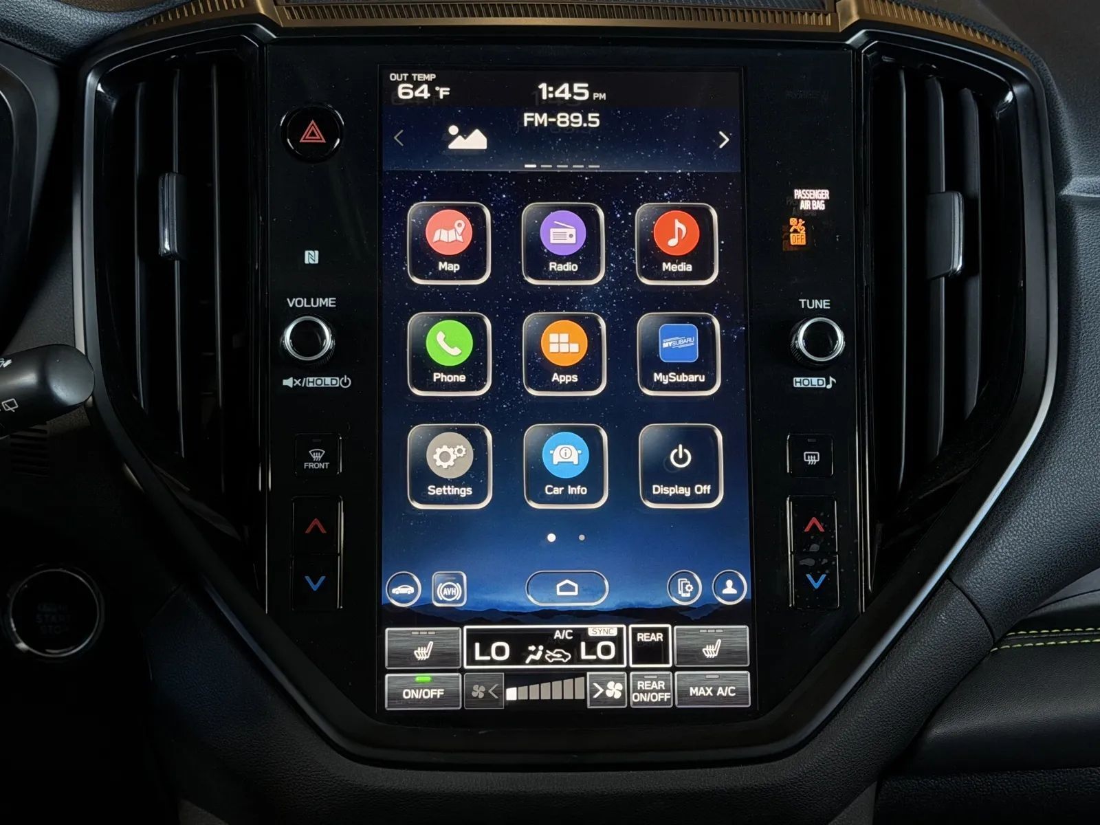 Rear Automatic emergency braking, Front Automatic emergency braking, Lane keeping assist, Surround View Camera system, Check rear seat reminder, Driver attention alert system, Audible Warning Pre-collision warning system, Visual Warning Pre-collision warning system, Sensor/alert Blind spot safety, Rear Cross traffic alert, Lane deviation sensors, Driver Knee airbags, Front Side airbags, Rear Side curtain airbags, Front Side curtain airbags, Third Row Side curtain airbags, Rear Parking sensors, 4-wheel ABS, Anti-lockout Power door locks, Cornering brake control, Auto-locking Power door locks, Hill Descent Off-road driving assist, Auto Off Electronic parking brake, Trailer stability control, Ventilated Disc Rear brake, Alarm Anti-theft system, Braking assist, Hill holder control, Ventilated Disc Front brake, Dual Front airbags, Vehicle Immobilizer Anti-theft system, Power brakes, LATCH System Child seat anchors, Electronic brakeforce distribution, Stability control, Traction control, In Dash Rearview monitor, Occupant Sensing Passenger Airbag deactivation, Front Seatbelt pretensioners, Front Seatbelt force limiters, Front Emergency locking retractors, Rear Seatbelt pretensioners, Door Unlock Impact sensor, Rear Emergency locking retractors, Front Seatbelt warning sensor, Fuel Cut-off Impact sensor, Third Row Emergency locking retractors, Semi-automatic Adaptive stop and go cruise control, Lane Centering Autonomous lane guidance, Adaptive cruise control, Head-up display, Proximity Entry System Multi-function remote, Heated steering wheel, 12 Driver seat power adjustments, Automatic Climate Control Rear air conditioning, Leather Steering wheel trim, Automatic Climate Control Front air conditioning, Leatherette Upholstery, Driver Seat Memorized settings, Side Mirrors Memorized settings, Dual Front air conditioning zones, Paddle Shifter Steering wheel mounted controls, Power Driver Seat Easy entry, Independently Controlled Rear air conditioning, Push-button start, Heated Driver seat, Leather Shift knob trim, Heated Passenger seat, Homelink - Garage Door Opener Universal remote transmitter, Auto-dimming Rearview mirror, Heated Rear seat, Liftgate Memorized settings, Contrast Stitching Upholstery accents, Variable/speed-proportional Power steering, Bucket Front seat, Simulated Carbon Fiber Door trim, Captains Chairs Rear seat, Chrome Interior accents, 40-60 Split Bench Third row seat, Leatherette Door trim, Leatherette Dash trim, Leatherette Center console trim, Carpet Floor mat material, 2 Driver Memorized settings, Side Window Sunshade, Air filtration, Flat Rear seat folding, Flat Third row seat folding, Split Third row seat folding, Split Rear seat folding, Retractable Cargo cover, USB-C Front Power outlet(s), USB-C Rear Power outlet(s), 12V Cargo Area Power outlet(s), Two 12V Front Power outlet(s), 12V Front Power outlet(s), Tilt And Telescopic Steering wheel, Third Row Rear vents, Rear Floor mats, Front Floor mats, Illuminated Cupholders, 4-way Power Lumbar Driver seat power adjustments, Multi-function display, Rubber/vinyl Cargo area floor mat, Front Console With Armrest And Storage Center console, Compass, USB Third Row Power outlet(s), Illuminated Center console, External temperature display, Rear Outboard Seats Armrests, MPG Fuel economy display, Range Fuel economy display, 4 Passenger seat power adjustments, Front Reading lights, Tachometer Gauge, Door Courtesy lights, Rear Reading lights, Reclining Passenger seat power adjustments, Reclining Driver seat power adjustments, Third Row Reading lights, Height Driver seat power adjustments, 4.2 In. Instrument cluster screen size, Front Cupholders, Third Row Cupholders, Maintenance Due Warnings and reminders, Front Overhead console, Dual Illuminating Vanity mirrors, Conversation mirror, Rear Cupholders, Cargo area light, 2 One-touch windows, Panic Alarm Multi-function remote, Audio Steering wheel mounted controls, Cargo Tie-down Anchors And Hooks Storage, Carpet Floor material, Cruise Control Steering wheel mounted controls, Phone Steering wheel mounted controls, Multi-function Steering wheel mounted controls, Front Seatback Storage, Voice Control Steering wheel mounted controls, Single Rear air conditioning zones, Sunglasses Holder Storage, Trunk Release Multi-function remote, Organizer Tray Center console, Power Panoramic Moonroof / Sunroof, Aluminum Alloy Wheels, Cornering Headlights, LED Headlights, Self-leveling Headlights, Power Operated Rear trunk/liftgate, Auto High Beam Dimmer Headlights, Dual Tip Exhaust, LED Front fog lights, Safety Reverse Power windows, Heated windshield wiper rests, Power Side mirror adjustments, Heated Side mirrors, Daytime running lights, Approach Lamps Exterior entry lights, Steel Spare wheel, Black Roof rails, Intermittent Rear wiper, Rear Window defogger, Variable Intermittent Front wipers, Rear privacy glass, Auto-on In Reverse Rear wiper, With Washer Rear wiper, Tire Pressure Monitoring System, Integrated Turn Signals Side mirrors, Roofline Rear spoiler, Reverse Gear Tilt Side mirror adjustments, Tinted glass, Auto On/off Headlights, Auto Delay Off Headlights, Tilt/slide Moonroof / Sunroof, Temporary Spare tire size, One-touch Open/close Moonroof / Sunroof, Sliding Sunshade Moonroof / Sunroof, Anti-trapping Moonroof / Sunroof, Black Fender lip moldings, Rear Protector Bumper detail, Wiper Activated Headlights, Fixed Liftgate window, Liftgate Rear trunk/liftgate, Black Rear bumper color, Black Window trim, Black Mirror color, Manual Folding Side mirror adjustments, Black Grille color, Stainless Steel Exhaust tip color, Black Headlight bezel color, Black Front bumper color, Touch Screen Display Navigation system, Voice Operated Navigation system, Memory Card Navigation system, Harman/kardon Premium brand, Wireless Apple CarPlay Smartphone integration, Wireless Android Auto Smartphone integration, 792 Watts, 11.6 In. Infotainment screen size, 13 Total speakers, MySubaru Smart device app compatibility, Hotsp