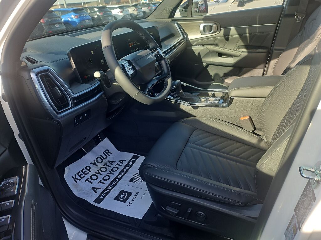Apple CarPlay & Android Auto smart device wireless mirroring,Forward Collison-Avoidance Assist (FCA-JT: Cyc/Ped/Junction Turning) pedestrian impact prevention,Highway Driving Assist 2 (HDA 2) Automatic curve slowdown cruise control,Mobile hotspot internet access,Rear mounted camera,Lane Keep Assist System (LKAS),Blind-Spot Collision-Avoidance Assist-Rear (BCA-R) & Parallel Exit active blind spot system,Rear Cross-Traffic Collision Avoidance (RCCA),Navigation-Based Smart Cruise Control-Ramp w/Stop & Go & Curve Control (NSCC-R) & Machine Learning (SCC-ML),Brake assist system,Cruise control with steering wheel mounted controls,Smart Power Liftgate power liftgate rear cargo door,Ventilated driver and front passenger seats,Integrated navigation system with voice activation,Keyfob remote start,Heated steering wheel,Heated driver and front passenger seats,Heated rear seats,Leather front seat upholstery,Primary monitor touchscreen,Fixed third-row seats,First and second-row sliding and tilting glass sunroof with express open/close activation sunshade,Driver seat power reclining, lumbar support, cushion extension, cushion tilt, fore/aft control and height adjustable control,DYNAMAX automatic full-time AWD,2.5L I-4 port/direct injection, DOHC, variable valve control, intercooled turbo, regular unleaded, engine with 281HP,Front wireless smart device charging,Forward Collision-Avoidance Assist (FCA-LO/LS/JX),Driver Attention Warning (DAW),Highway Driving Assist (HDA) traffic sign recognition with automatic speed limit assist,Evasive Steering Assist (ESA) evasion assist system,Parking Collision Avoidance Assist - Rear (PCA-R) rear pedestrian detection prevention,Junction Crossing front cross traffic mitigation,Smart Key with hands-free access and push button start,Surround View Monitor (SVM) aerial view camera,Blind-Spot View Monitor (BVM) left and right blind spot view,Smart device remote start,Automatic brake hold,Video-feed rearview mirror,Bluetooth wireless audio streaming,Power rear child safety door locks,Digital Key 2.0 Advanced smart device-as-key proximity door locks,Gauge cluster display size: 12.30,Smart Liftgate proximity cargo area access release,Front mounted camera,Right side camera,Left side camera,Safe Exit Warning (SEW) external exit warning system,Dual-zone front climate control,Kia Connect voice-activated climate control,Full gauge cluster screen
