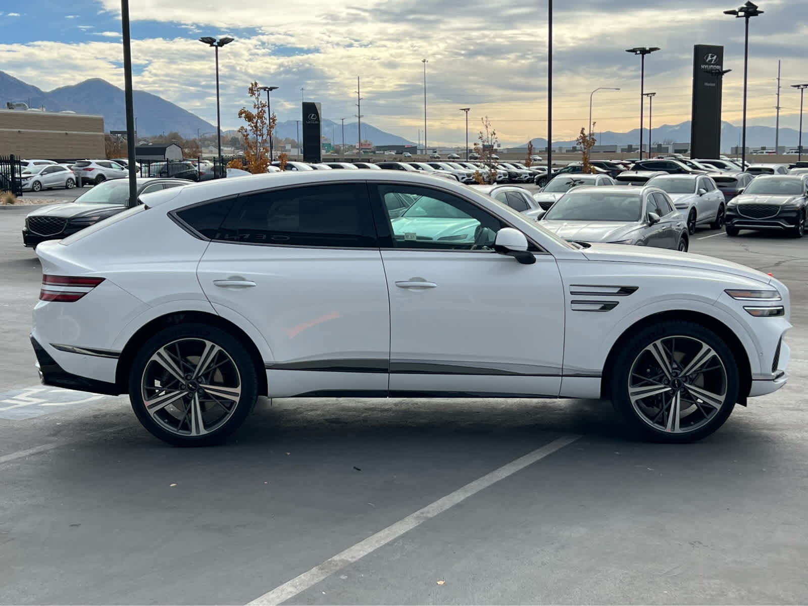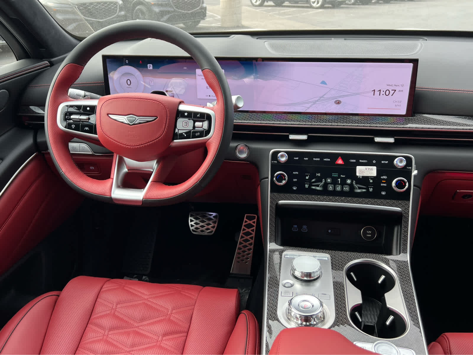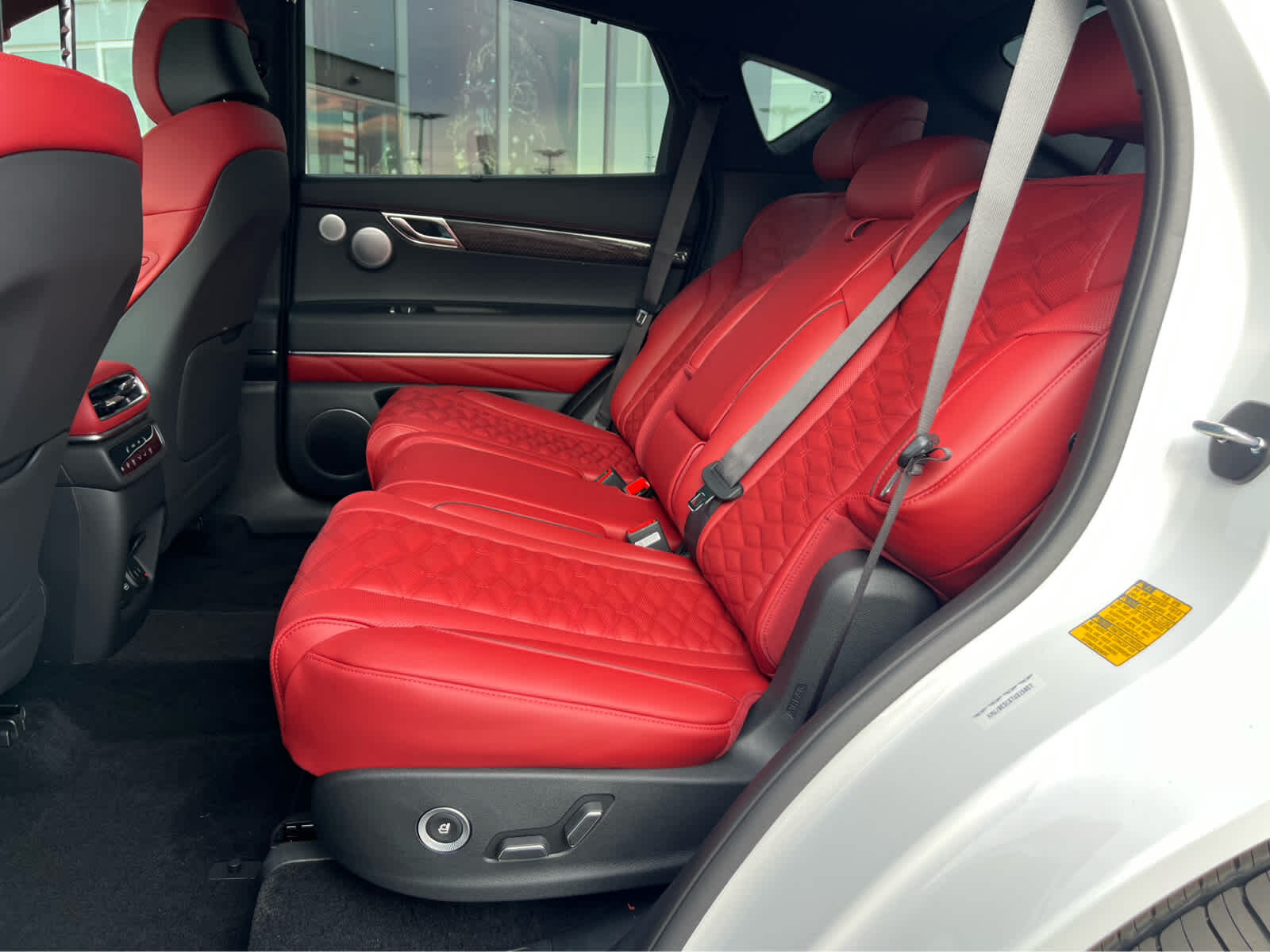 Leather Seats, Navigation, All Wheel Drive, Power Liftgate, Rear Air, Heated Driver Seat, Heated Rear Seat, Cooled Driver Seat Rear Spoiler, MP3 Player, Privacy Glass, Remote Trunk Release. Genesis 3.5T e-SC with Alta White exterior and Sevilla Red/Obsidian Blk interior features a V6 Cylinder Engine with 409 HP at 5800 RPM*.