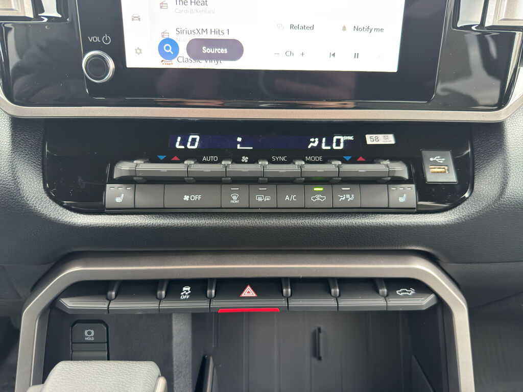 SR5 Convenience Package: Blind Spot Monitor with Lane Change Assist; Parking Support Alert/brake,SR5 Premium Package: Automatic Power Tailgate with Easy Closing; Leather Seat Trim; 8-Way Power-Adjustable Heated Front Seats,Heated Leather Steering Wheel,All Weather Floor Liners,Tailgate Insert - Black,Heated Power Black Outside Mirrors,Apple CarPlay/Android Auto smart device wireless mirroring,Lane Tracing Assist (LTA) hands-on cruise control,Pre-Collision System with Pedestrian Detection,Wi-Fi Connect with 30-day or up to 3GB trial subscription mobile hotspot internet access,Rear mounted camera,Lane Departure Alert (LDA) w/Steering Assist,Rear collision mitigation,Full-Speed Range Dynamic Radar Cruise Control (DRCC),Brake Assist (BA) predictive brake assist system,Cruise control with steering wheel mounted controls,Power open and close tailgate,Heated steering wheel,Heated driver and front passenger seats,Leather front seat upholstery,Primary monitor touchscreen,Driver seat power reclining, lumbar support, cushion tilt, fore/aft control and height adjustable control,4WDemand part-time 4WD,I-FORCE 3.4L V-6 port/direct injection, DOHC, variable valve control, twin turbo, regular unleaded, engine with 389HP,I-FORCE 3.4L V-6 DOHC,Pre-Collision System (PCS) forward collision mitigation with left turn assist,Vehicle Sway Warning driver attention alert,Road Sign Assist (RSA),Smart Key with hands-free access and push button start,Smart device remote start,Push-button,Automatic brake hold,Active aerodynamics,Bluetooth wireless audio streaming,Dual-zone front climate control,Automatic High Beams (AHB) auto high-beam headlights,Immobilizer,Safety Connect (up to 10-year trial subscription) vehicle tracker,Safety Connect (up to 10-year trial subscription) vehicle integrated emergency SOS system,Bluetooth handsfree wireless device connectivity,Trailer brake controller,Trailer sway control,Pickup bed rail system,External memory control,Internet radio capability,Black rear bumper insert,Vehicle Stability Control (VSC) electronic stability control system,Hill Start Assist Control (HAC),Leather rear seat upholstery,Automatic climate control,Rear Seat Reminder rear seat check warning,Front and rear parking sensors,LED daytime running lights,LED brake lights,LED front fog lights,Leather and metal-look steering wheel