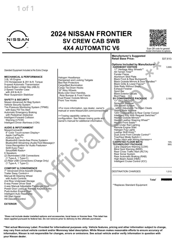 Hardbody edition is hard to come by and comes with a bunch of fun extras. I added the picture from the dealer that lists everything this truck comes with.
