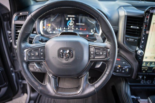CARFAX One-Owner. Clean CARFAX. 4D Crew Cab Billet Silver Metallic Clearcoat 15/21 City/Highway MPG 4WD 3.0L I6 Ram 1500 RHO 12-Way/1-Way Trailer Connector, 14.4'' Touchscreen Display, 240 Amp Alternator, 4G LTE Wi-Fi Hot Spot, Apple CarPlay, Connected Travel & Traffic Services, Connectivity - US/Canada, Driver Power Seat Back Massage, Driver Seat Memory, Driver/Passenger Wrapped Assist Handles, Drowsy Driver Detection, Dual Wireless Charging Pad, Evasive Steer Assist, Exterior Mirrors w/Memory, Front Passenger Interactive Display, Front Passenger Power Seat Back Massage, Full Length Premium Upgraded Floor Console, Google Android Auto, GPS Navigation, Hands-Free Active Driving Assist System, harman/kardon 19 Speaker Premium Sound, HD Radio, Heads-Up Display, Heated Second Row Seats, Integrated Voice Command w/Bluetooth, Intersection Collision Assist System, Leather/Carbon Flat-Bottom Steering Wheel, LED CHMSL Lamp, Luxury Front Door Trim Panel, Power Adjustable Pedals w/Memory, Power Tailgate, Premium Wrapped I/P Bezel, Quick Order Package 22Y RHO, Radio: Uconnect 5 Nav w/14.4'' Display, Radio/Driver Seat/Mirrors/Pedals Memory, Rain Sensitive Windshield Wipers, Real Carbon Fiber Interior Accents, Rear 60/40 Folding Split Recline Seat, RHO Level 1 Equipment Group, Smartphone As A Key Capable, Surround View Camera System, Traffic Sign Recognition, USB Host Flip, Ventilated Front Seats, Ventilated Rear Seats. 2025 8-Speed Automatic 2025 Ram 1500 RHO