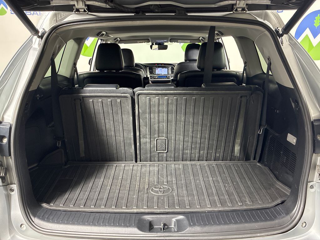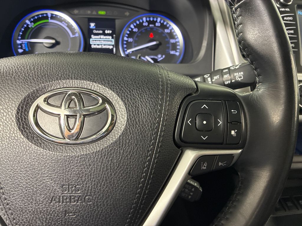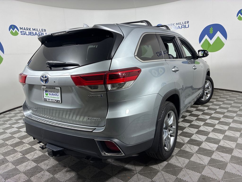 This 2019 Silver Toyota Highlander Hybrid Limited AWD is well equipped and includes these features and benefits: 3.5L V6 DOHC 24V, 12 Speakers, 3.542 Axle Ratio, 3rd row seats: split-bench, 4-Wheel Disc Brakes, ABS brakes, Air Conditioning, Alloy wheels, AM/FM radio: SiriusXM, Auto High-beam Headlights, Auto-dimming Rear-View mirror, Automatic temperature control, Brake assist, Bumpers: body-color, CD player, Delay-off headlights, Driver door bin, Driver vanity mirror, Dual front impact airbags, Dual front side impact airbags, Electronic Stability Control, Exterior Parking Camera Rear, Four wheel independent suspension, Front anti-roll bar, Front Bucket Seats, Front Center Armrest, Front dual zone A/C, Front fog lights, Front reading lights, Fully automatic headlights, Garage door transmitter: HomeLink, Heated door mirrors, Heated front seats, Heated/Ventilated Front Bucket Seats, Illuminated entry, Knee airbag, Leather Shift Knob, Low tire pressure warning, Memory seat, Navigation System, Occupant sensing airbag, Outside temperature display, Overhead airbag, Overhead console, Panic alarm, Passenger door bin, Passenger vanity mirror, Perforated Leather Seat Trim, Power door mirrors, Power driver seat, Power Liftgate, Power moonroof, Power passenger seat, Power steering, Power windows, Radio: Entune Premium JBL Audio w/Nav & App Suite, Rear air conditioning, Rear anti-roll bar, Rear Parking Sensors, Rear reading lights, Rear window defroster, Rear window wiper, Reclining 3rd row seat, Remote keyless entry, Roof rack: rails only, Security system, Speed control, Speed-sensing steering, Split folding rear seat, Spoiler, Steering wheel mounted audio controls, Telescoping steering wheel, Tilt steering wheel, Traction control, Trip computer, Turn signal indicator mirrors, Variably intermittent wipers, Ventilated front seats, and Wheels: 19'' 5-Spoke Chromtec Alloy.