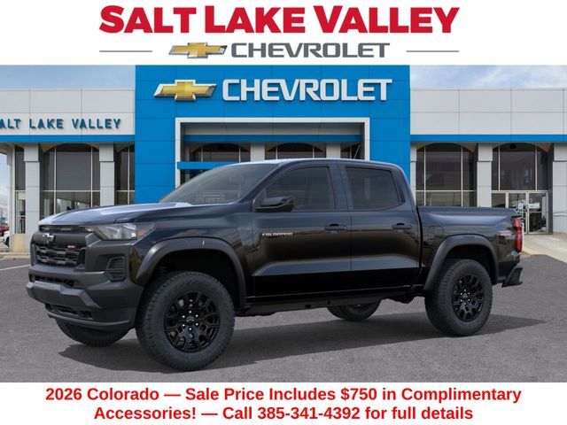 Discover the new Chevrolet Colorado at Salt Lake Valley Chevrolet in Salt Lake City! With bold design, modern technology, and reliable performance, Chevrolet makes every drive exciting. Whether it’s city streets or canyon roads, the Colorado is ready for anything. Call us today at 801-969-8221 to schedule a time to see it! --- 2026 Chevrolet Colorado Black 2.7L I4 Turbocharged DOHC 16V LEV3-ULEV50 310hp --- Final price excludes tax, tag, title, documentation fees, dealer-installed options, and any market-based pricing adjustments. Financing through GM Financial is required for all discounts to apply. Special finance offers may not be combined with certain factory incentives. While we strive for accuracy, errors may occur—please verify all information with a sales representative. For the most accurate pricing, call (801) 969-8221 or visit us in person. Prices and payments are subject to change based on manufacturer incentives. - Price includes - $500 - Chevrolet Consumer Cash Program - Price includes $1,500 trade in allowance program for customers that own a 2018 or newer passenger car or truck with less than 80,000 miles and trade in their vehicle towards the purchase of a new 2024-2025 Chevrolet. Some restrictions may apply. Contact dealer for details –