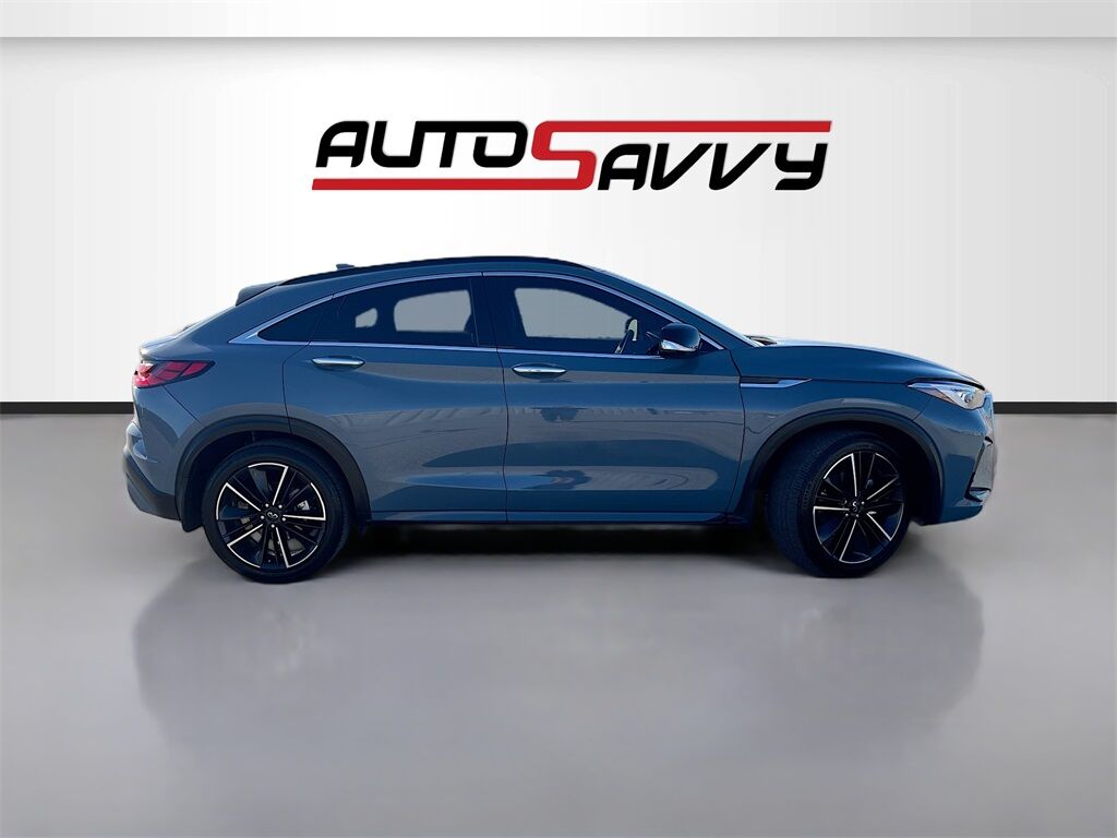 Discover the 2022 INFINITI QX55 SENSORY AWD, now available at AutoSavvy Las Vegas. This luxurious sport utility vehicle, finished in a sophisticated Slate Gray, is powered by a dynamic VC-Turbo 2L I-4 engine, delivering an impressive 268 horsepower. With its sleek design and advanced features, including all-wheel drive, a CVT transmission, and semi-aniline leather front seat upholstery, this QX55 promises a refined driving experience. Enjoy the convenience of modern technology with Apple CarPlay, Android Auto, and a premium Bose Performance Series audio system with 16 speakers. The vehicle also offers intelligent safety features such as adaptive cruise control, blind spot monitor, and automatic emergency braking, ensuring peace of mind on the road. With only 43,315 miles, this QX55 is ready for many more adventures. The current status of the title is branded, but AutoSavvy Las Vegas is committed to transparency and quality. This INFINITI QX55 is Savvy Certified, meeting rigorous standards for reliability and performance. Drive with confidence knowing it is backed by our 4-month/4,500 Mile Warranty, reflecting our dedication to your satisfaction and peace of mind. Visit AutoSavvy Las Vegas today to explore the 2022 INFINITI QX55 SENSORY AWD, where luxury, technology, and performance converge to redefine your driving experience.