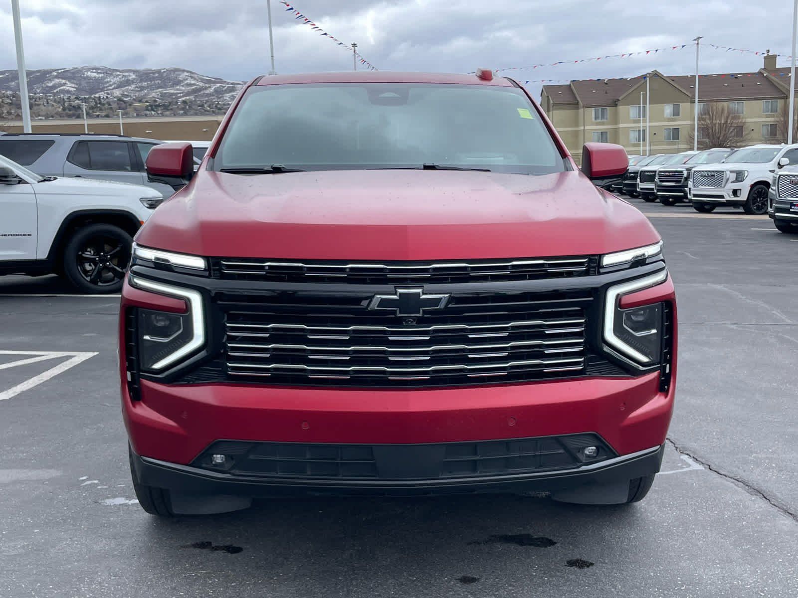 Leather Seats, Third Row Seat, Quad Bucket Seats, Power Liftgate, Rear Air, Heated Driver Seat, Heated Rear Seat, Cooled Driver Seat. MP3 Player, Privacy Glass, Keyless Entry, Remote Trunk Release. Non-Smoker vehicle Chevrolet High Country with Radiant Red Tintcoat exterior and Jet Black interior features a 8 Cylinder Engine with 420 HP at 5600 RPM*.