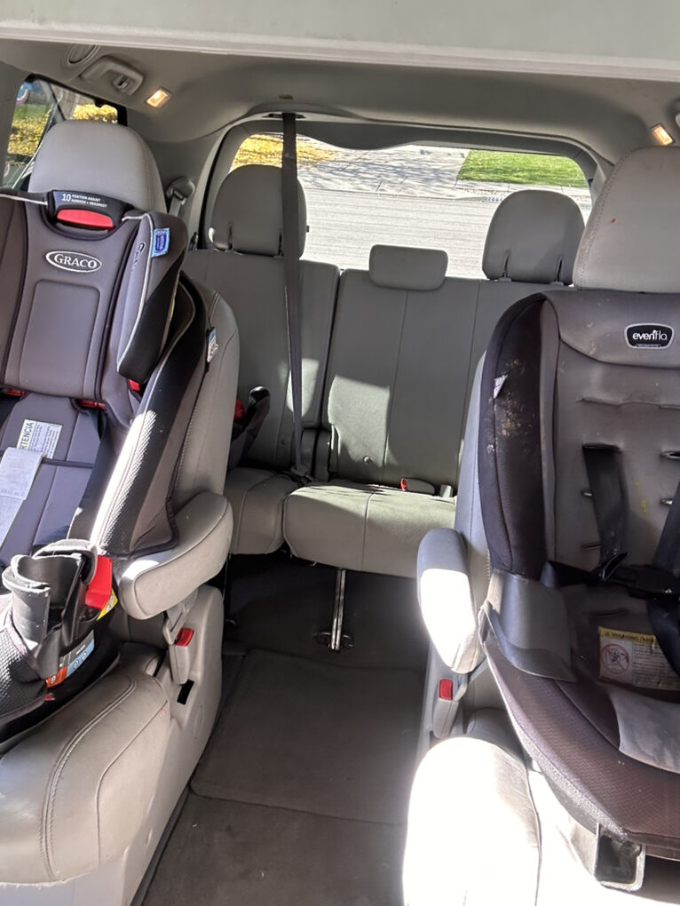 Hard to find ALL WHEEL DRIVE minivan WITH DVD system. 7 seater with great storage in the back. Maintenance always done early or on time. Gets between 350-400 miles per tank and does so good in the snow. Pictures coming soon. Text for questions or to test drive this unicorn car. Perfect for families!has minor scrapes on the outside and maybe tiny dings. The only real damage is pictured on the right sliding door image. We bought it like that and it’s a fairly cheap part to replace we just never got to it before it never caused any issues or inconvenience. Truck in the background is also for sale 😉