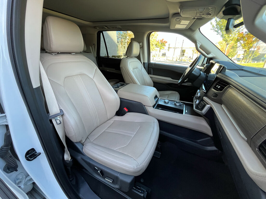 Equipment Group 302A High Package: Heated and Ventilated Leather Front Captain''s Chairs; 7,550 lbs GVWR; B&O Sound System by Bang and Olufsen; Ebony Black Mesh Grille; Power-Folding Sideview Mirrors with Autofold; 22" 12-Spoke Polished Aluminum Wheels; Magnetic-Painted Power Deployable Running Boards; 10-Speed Automatic Transmission with SelectShift; 3.5L EcoBoost V6 Engine; Heavy-Duty Independent Suspension; P285/45R22 110H AS BSW Tires; 3.31 Axle Ratio,SYNC 4 AppLink/Apple CarPlay/Android Auto smart device wireless mirroring,FordPass Connect 4G mobile hotspot internet access,Connected Navigation integrated navigation system with voice activation,Lane Centering hands-on cruise control,Forward collision mitigation with left turn assist and pedestrian impact prevention,Pre-Collision Assist with Pedestrian Detection,Rear camera with washer,Lane Keeping Alert,Brake assist system,Cross-Traffic Alert collision warning,Driver Alert,MyKey restricted driving mode/alerts,Automatic brake hold,Front mounted camera,BLIS (Blind Spot Information System),Traffic sign recognition with automatic speed limit assist,Following distance alert,Auto High Beam auto high-beam headlights,SecuriLock immobilizer,Vehicle tracker,Adaptive Cruise Control with Stop-and-Go,Cruise Control w/Adjustable Speed Limiting Device (ASLD) cruise control with steering wheel mounted controls,Power liftgate rear cargo door,Keyfob remote start,Front wireless smart device charging,SecuriCode external keypad door lock control,Smart key with hands-free access and push button start,Smart device remote start,Push-button,Power fold into floor third-row seat,Ventilated driver and front passenger seats,Heated steering wheel,Heated driver and front passenger seats,Heated rear seats,Leather front seat upholstery,Fixed third-row seats,Driver seat power reclining, lumbar support, cushion tilt, fore/aft control and height adjustable control,Dual-zone front climate control,Rear climate control system with separate controls,Third-row climate control with separate controls,Second-row bucket seats,Primary monitor touchscreen,Bluetooth wireless audio streaming,B&O Sound System by Bang & Olufsen speakers,Active noise cancellation,First and second-row sliding and tilting glass sunroof with express open activation sunshade,Part and full-time 4WD,EcoBoost 3.5L V-6 port/direct injection, DOHC, variable valve control, twin turbo, premium unleaded, engine with 400HP,EcoBoost 3.5L V-6 DOHC,Selectable Terrain Modes